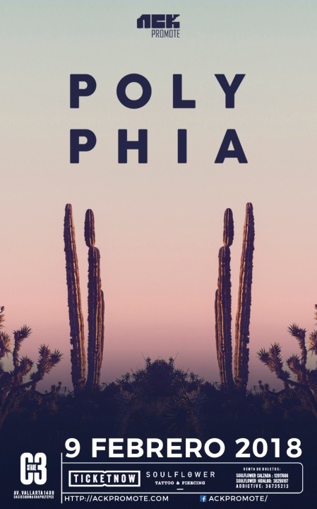 Con dos discos de estudio Muse (2014), Renaissance (2016); dos EPs, Inspire (2013) su primer demo y su más reciente trabajo “The Most Hated”, la agrupación instrumental Polyphia visita por primera vez Guadalajara.Difícil es clasificar el género al que pertenecen ya que sus guitarras y ganchos melódicos van desde el metal progresivo, hasta el Djent, pasando por la electrónica, el post-metal y el art rock, teniendo como punto en común que sus piezas son completamente instrumentales.Después de algunos cambios en su alineación y años de evolución musical que quedaron plasmados en placas posteriores, Polyphia está actualmente integrado por Timothy Henson, guitarra; Scott LePage, guitarra; Clay Gober, bajo y Clay Aeschliman batería, han llevado el progresivo más allá de impecables ejecuciones, prueba de ello es su más reciente EP que los ha hecho figurar ya en las listas de rock de Billboard, mientras que Metal Injection los ha descrito como “una colaboración entre Michael Jackson y Nobuo Uematsu para el soundtrack de Final Fantasy”.El cuarteto originario de Plano Texas se presentará el 9 de febrero en el C3 StageLa agrupación también se presentará un día después en el Foro Alicia de la Ciudad de México.Boletos a la venta -> http://bit.ly/2z9mBBaPreventa 1: $350 (limitada a 200 boletos) / Preventa 2: $450 / Día del evento: $500 / Balcón: $750 (Incluye 2 bebidas y acceso preferencial) limitado a 50 personas.