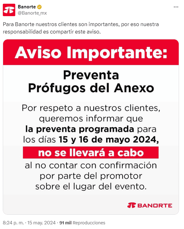 Los reconocidos y populares cantantes de música regional mexicana, Julión Álvarez y Alfredo Olivas, causaron revuelo al anunciar su gira conjunta “Prófugos del Anexo” misma que tendría un concierto en la Ciudad de México, pero que ha sembrado las dudas a causa de varias inconsistencias. Olivas anunció en sus redes sociales que los conciertos en la CDMX se realizarían los días 20 y 21 de julio de 2024, pero no comentó nada acerca de la sede del evento. Se especuló que sería en el Campo Marte, propiedad de la Sedena, pero el ente estatal aseguró que no existían los permisos para tocar ahí y que la información era falsa. Banorte había confirmado la preventa de boletos para el 15 y 16 de mayo de 2024, sin embargo, ante la ausencia de confirmación del organizador acerca de la sede, el banco anunció que la preventa sería cancelada hasta nuevo aviso. Del mismo modo, la organización de la gira confirmó la información en las redes sociales, asegurando que cualquier información del evento se daría a conocer en sus redes sociales, las de Julión Álvarez y las de Alfredo Olivas. De momento no se sabe qué sucederá con los conciertos, esperando una respuesta por parte de los promotores para encontrar un recinto adecuado para un concierto que será histórico en el mundo de la música regional mexicana.Recuerda seguir solamente la información oficial y evitar creer y difundir rumores de otros medios para evitar fraudes y estafas. ***Mantente al día con las noticias, únete a nuestro canal oficial de WhatsAppFA