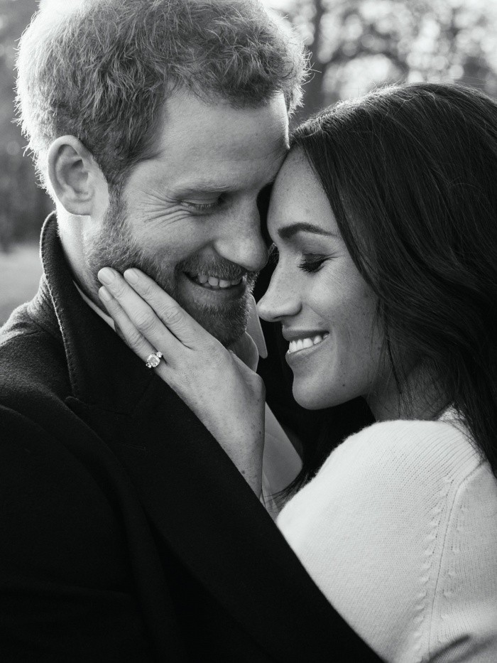 El palacio de Kensington divulgó las fotos del compromiso entre el príncipe Enrique y la actriz estadounidense Meghan Markle, cuyo enlace matrimonial tendrá lugar el próximo 19 de mayo de 2018.Se han publicado dos fotografías, una en blanco y negro que muestra a la pareja abrazada y sonriente, y otra en la que ambos aparecen sentados, con las manos entrelazadas y Markle ligeramente apoyada en Enrique.Las instantáneas fueron tomadas por el fotógrafo Alexi Lubomirski esta semana en el parque de Frogmore House en Windsor, en el Reino Unido.La imagen en blanco y negro fue captada en los jardines y en ella se puede observar a Markle con un jersey blanco acariciando el rostro de Enrique, con el anillo de compromiso en primer plano.La fotografía en color muestra a la pareja sentada en unos escalones, el príncipe Enrique lleva un traje azul y Markle un vestido negro con toques dorados:Lubomirski fue asistente de Mario Testino, quien tomó algunas de las instantáneas más famosas de la madre de Enrique, la fallecida Diana de Gales.El fotógrafo aseguró que poder retratar a la pareja "es un honor y un privilegio", al igual que haber sido "testigo" del amor de los dos jóvenes."No puedo evitar sonreír cuando miro las fotos que he tomado de ellos. Son muy felices juntos", explicó en declaraciones divulgadas por Kensington.La pareja, que anunció su compromiso el pasado 27 de noviembre, se casará en la capilla de San Jorge, en el castillo de Windsor, la residencia de fin de semana de la soberana británica a las afueras de Londres. DR