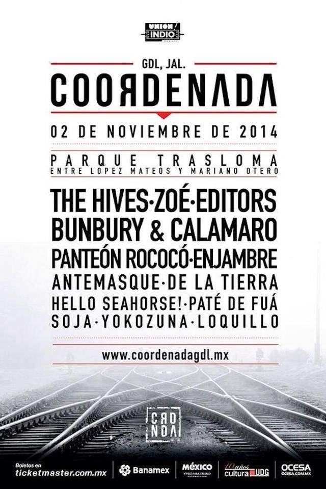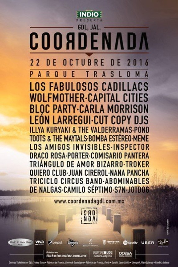 La quinta edición del Festival Coordenada GDL ya tiene fecha, nuevamente se llevará a cabo durante dos días.Será el viernes 19 y sábado 20 de octubre los días en que se celebre la edición 2018, misma que cambia de patrocinador cervecero, dejando a Indio para darle la bienvenida a Tecate: #TecateCoordenadaEl festival aún no tiene sede confirmada ya que luego de las anteriores en el Trasloma, el alcalde de Zapopan Pablo Lemus Navarro canceló el espacio para más eventos masivos en el sitio en atención a quejas de los vecinos por el ruido.El talento que lo conformará aún es un misterio, pero a destacar que el 20 del mismo mes, pero en el Parque Fundidora, de Monterrey Nuevo León, se desarrollara el Festival Live Out por lo que seguramente alguna agrupación de estas estará en el festin de Guadalajara.Te dejamos el cartel de las primeras cuatro ediciones del Coordenada GDL.