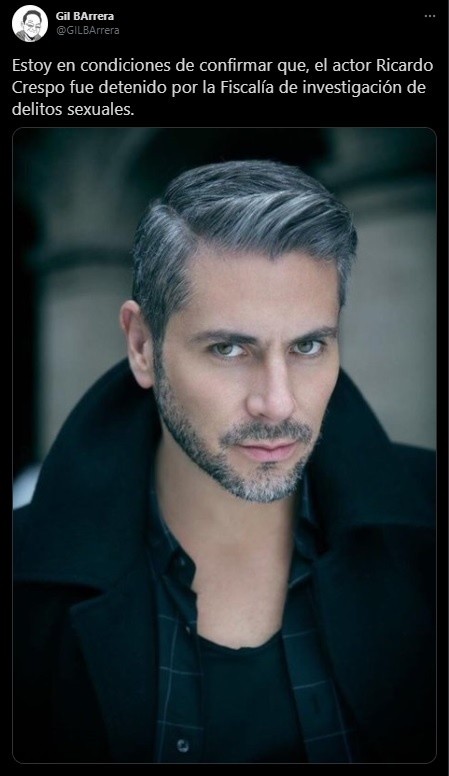 El actor Ricardo Crespo Green fue detenido por la Fiscalía General de Justicia de la Ciudad de México (FGJ-CDMX) por presuntamente abusar sexualmente de su hija de 14 años.Fue el periodista Carlos Jiménez quien dio a conocer la detención de Ricardo Crespo, afirmando que el hecho ocurrió la mañana de este lunes 15 de febrero tras una denuncia hecha por su ex esposa en diciembre pasado.Por su parte, Gil Barrea, comunicador, agregó que “está en condiciones de confirmar” la detención de Crespo.“Estoy en condiciones de confirmar que el actor Ricardo Crespo fue detenido por la Fiscalía de Investigación de Delitos Sexuales”, escribió en Twitter.Ricardo Crespo perteneció al grupo Garibaldi y es conocido por participar en la serie de Netflix “Control Z”. También formó parte del elenco de producciones como “La Piloto 2”, “El Dragón”, “Súbete a mi moto”, así como en episodios de “La rosa de Guadalupe” y “Como dice el dicho”.Hasta el momento la Fiscalía de la CDMX no ha emitido algún comunicado al respecto.AC