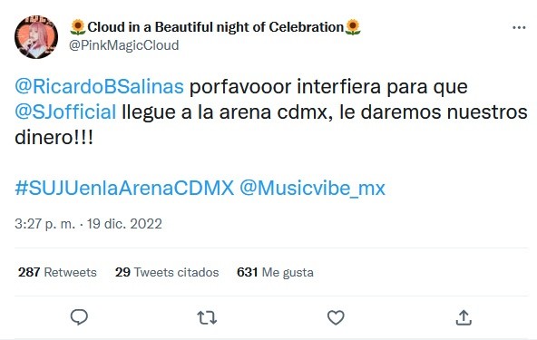 El empresario Ricardo Salinas Pliego lanzó un concurso en Twitter para traer a la banda coreana Super Junior a la Arena CDMX, luego de que una usuaria lanzara la petición.Por medio de la red social, la usuaria @PinkMagicCloud pidió al magnate mexicano traer a la banda."@RicardoBSalinas por favor interfiera para que @SJofficial llegue a la arena CDMX, le daremos nuestros dineros!!!", se lee en el tuit.Ante ello, el fundador de Grupo Salinas pidió saber más acerca del grupo para considerar ayudar. "A ver… de que se trata, dígame, la escucho y si puedo le ayudo".Sin embargo, al no recibir tanta respuesta, el dueño de Elektra creo un hashtag para sumar un número de fanáticos de la banda y poder hacer realidad la petición. "Pues yo no veo que sean muchos… a ver para cuantificar, escríbanme algo que incluya: #RicardoSalinas traiga a #SUJUenlaArenaCDMX y vendan los boletos por #SuperBoletos. Así nos vamos a dar cuenta de cuantos realmente quieren el concierto", explicó.Ya me están convenciendo, dice Salinas PliegoAsimismo, anunció la cantidad de RT que se habían logrado. "Van 1130 RT a ver si es cierto que llenarían la Arena CDMX, me están convenciendo...".Finalmente, el dueño de TV Azteca preguntó a su hijo y a otras tres cuentas de Twitter sobre la posibilidad de hacer realidad el sueño de los jóvenes. "No pues ya me están convenciendo… como ves @SalinasBenjamin, @ArenaCdMexico, @lucianopascoe, @Rafa_RodriguezS… ¿podremos hacer algo por los jóvenes?".vll