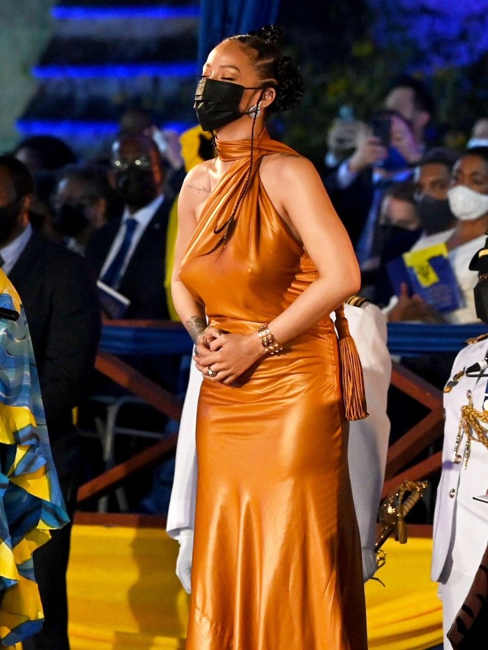 Rihanna, la personalidad más famosa de Barbados, fue nombrada esta semana como ‘heroína nacional’ en uno de los primeros actos oficiales de la isla caribeña, que se convirtió en la república más joven del mundo al independizarse de manera oficial de la monarquía británica, en una misma ceremonia a la que también acudió el príncipe Carlos en representación de la reina Isabel ll. Sin embargo, para los internautas que vieron las fotos de la noticia, hubo algo que llamo más su atención que el reconocimiento otorgado a la intérprete de ‘Diamonds’, incluso todavía más que el deslumbrante vestido color ocre de la firma Bottega Veneta usado en esa noche tan especial: las posibles pistas encontradas por sus fans en las fotos de Rihanna en Barbados que revelarían el posible embarazo con su pareja A$ap Rocky.Entre las fotos de la ceremonia también destacaron algunas en las que la cantante mantiene sus manos sobre el vientre, lo cual señalaron algunos, lo habría hecho a modo de ocultar su baby bump.Sobre el embarazo de Rihanna, se había hablado por primera vez en septiembre de este año cuando acudio a la Met Gala 2021. Sin embargo, la cantante no ha hecho declaraciones al respecto en ninguna de las dos ocasiones. Por lo cual, todavía no hay ninguna fuente confiable haya confirmado la ola de rumores en Twitter y otras redes sociales. Las primeras publicaciones que enlazaban sentimentalmente a la pareja de famosos, comenzaron en el 2018 cuando la cantante de 33 años fue vista Con A$sap Rocky en el París Fashion Week de ese año. Desde entonces, su historia de amor parece seguir avanzando a nuevas etapas en las que tal vez los veamos a la famosa pareja acompañada de un pequeño tercer integrante el próximo año. CP
