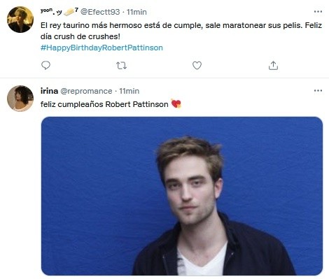 El próximo Batman, Robert Pattinson, cumple este jueves 35 años de edad y sus fans lo están celebrando.En Twitter, el nombre del actor de la saga de "Crepúsculo" se hizo tendencia, pues cientos de seguidores han compartido imágenes para festejar su cumpleaños.Robert Pattinson nació el 13 de mayo de 1986 en Londres.En 2005 ganó reconocimiento al interpretetar a Cedric Diggory en la película de "Harry Potter y el cáliz de fuego".Sin embargo uno de los papeles por los que más ha sido reconocido es por su protagónico en la saga de "Crepúsculo".Pattinson encarnó a Edward Cullen en las películas Crepúsculo (2008), Crepúsculo: Luna Nueva (2009),Crepúsculo: Eclipse (2010), Crepúsculo: Amanecer - Parte 1 (2011) y Crepúsculo La Saga: Amanecer Parte 2 (2012), las cuales fueron éxitos en taquilla.El actor también ha sido parte de cintas como Z: la ciudad perdida (2016), Good Time (2017), High Life (2018), The Lighthouse (2019) y Tenet (2020).Finalmente, los seguidores de Pattinson están impacientes para verlo encarnar a “Bruce Wayne”, el superhéroe enmascarado, en la nueva película de Matt Reeves "The Batman"La cinta presentará a una versión más joven de Wayne”, quien a través de “Batman” ejerce la justicia nocturna en “Gotham”.