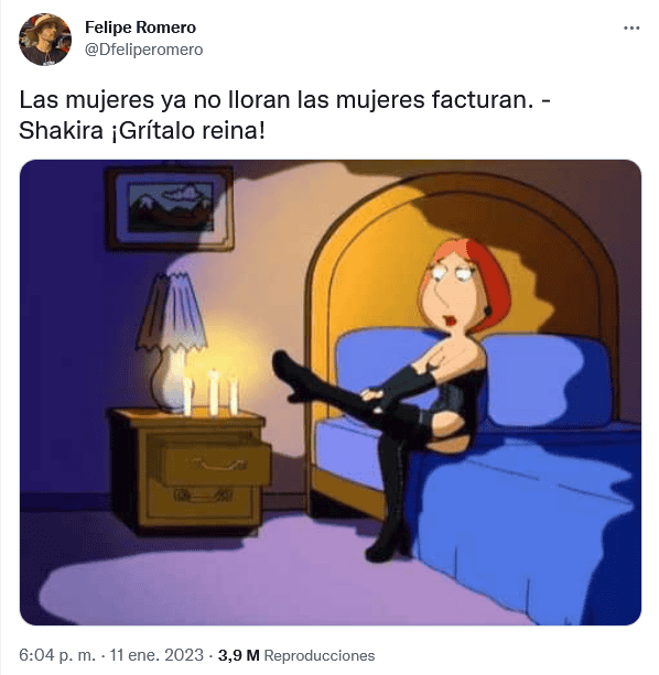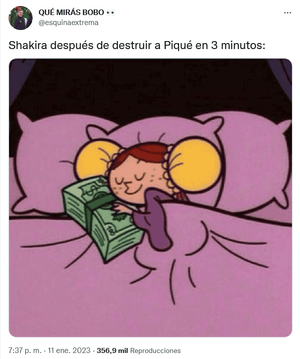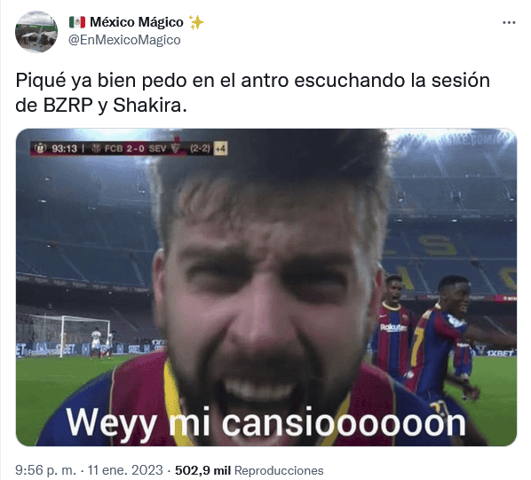 La cantante colombiana Shakira lanzó una nueva canción dedicada a su última pareja, el exfutbolista Gerard Piqué, y los memes no tardaron en inundar las redes sociales.Con el título de Music Sessions #53, y en colaboración con Bizarrap, el videoclip ha desatado los comentarios más diversos de parte de quienes reciben de buen agrado la acción y quienes critican lo que ha hecho Shakira tras su ruptura con Piqué el año pasado.En la canción de poco más de tres minutos, Shakira hace referencias a la relación entre ella, Gerard Piqué y su nueva novia, Clara Chía.Cada uno de los versos, el video y todo lo relacionado con Shakira han desatado la creatividad de los usuarios de Internet, quienes han compartido memes divertidos y hasta críticos. OF