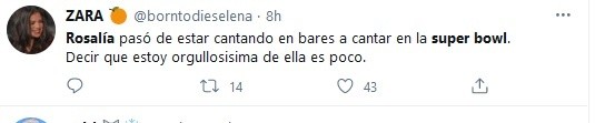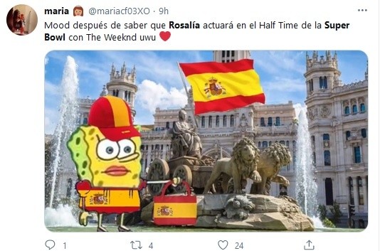The Weeknd, el artista canadiense que será este año la estrella del medio tiempo de la Super Bowl 2021, la final de la liga de fútbol americano, puede tener a la española Rosalía como invitada según diversos medios, pero a falta de cuatro días para el evento no hay confirmación oficial.Los rumores surgieron ya que la intérprete de "Malamente" cuenta con una colaboración con The Weeknd en el remix del tema "Blinding Lights", canción que salió el pasado 4 de diciembre y que es parte del tercer disco del canadiense que lleva el mismo nombre.Hasta el momento los cantantes ni la NFL han confirmado nada, sin embargo si esto sucediera, Rosalía sería la segunda artista española en actuar en el evento deportivo de EU. El primero fue Enrique Iglesias en 2000.Tras la noticia, la cantante se ha convertido en la favorita por los usuarios y han expresado su emoción por verla actuar junto a Abel Makkonen.Hace algunos días Daft Punk se hizo tendencia en las redes sociales después de que algunos medios filtraran la lista de canciones que The Weeknd interpretará en el descanso del partido entre Kansas City Chiefs y Tampa Bay Bucaneers.En la playlist aparecen también los nombres de Ariana Grande y Kendrick Lamar, cantantes que han colaborado con Abel.Eric Church y Jazmine Sullivan entonarán el himno nacional de los Estados Unidos en el inicio del partido y la cantante H.E.R. interpretará la canción "America the Beautiful".El próximo sábado 6 de febrero Green Day ofrecerá un concierto en el evento NFL Honors y será transmitido por los canales de YouTube de NFL y la CBS.Previo al partido, Miley Cyrus rendirá un homenaje al personal de salud de primera línea de control de la pandemia.con información de EFEjb