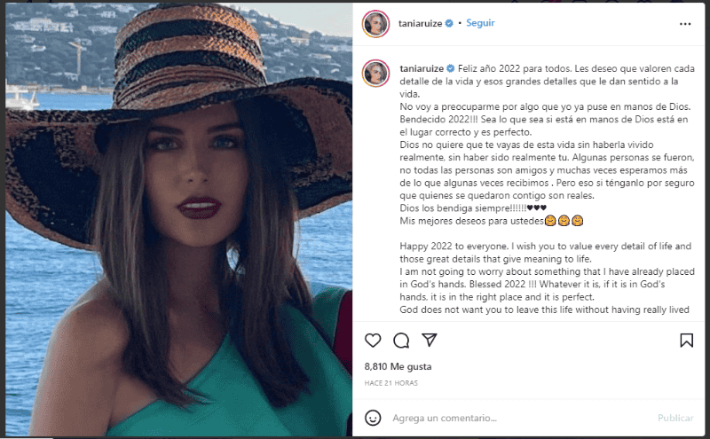 Tania Ruiz inició el Año Nuevo generando polémica y probablemente estrenando soltería, y es que la influencer desató los rumores de ruptura con el ex presidente de México, Enrique Peña Nieto debido a una publicación en su cuenta de Instagram que ha dejado intrigado a más de uno. "Dios no quiere que te vayas de esta vida sin haberla vivido realmente, sin haber sido realmente tú. Algunas personas se fueron, no todas las personas son amigos y muchas veces esperamos más de lo que algunas veces recibimos. Pero eso sí ténganlo por seguro que quienes se quedaron contigo son reales", escribió la modelo.Es la frase "algunas personas se fueron" la que más alertó en redes sociales y medios de comunicación quienes aseguran pudiera haber sido el ex esposo de Angélica Rivera.Sin embargo, en su siguiente post asegura que tiene el corazón contento y toda la energía para comenzar el 2022. Lo que podría indicar que el corazón no lo tiene roto."Doce meses, un corazón feliz, una actitud positiva, 4 estaciones, un estado de paz, unos ojos que ven hacia adelante, un alma que les desea el bien, 365 nuevos días, 365 de oportunidades. SIEMPRE DE LA MANO DE DIOS", escribió Ruíz en su último post.La pasada navidad Tania compartió la mesa con las hijas de Peña Nieto así lo hizo saber en sus historias de Instagram, red en la que publicó fotos con Paulina y Nicole Nieto.En estos posteos no se vio en ningún momento Peña Nieto, sin embargo, otros invitados y amigos del mismo como Luis Enrique Miranda Nava, ex secretario de Gobernación del Estado de México, y sus hijos estuvieron presentes.La relación entre Tania y Peña Nieto data del 2019 cuando fueron captados juntos en Madrid. Una de sus últimas apariciones juntos fue en octubre pasado cuando se vio a la pareja salir de un hotel de Roma y se desató una polémica pues una persona que se encontraba cerca del hotel reconoció a Peña Nieto y le gritó "ratero".A lo que la modelo respondió unos días después del altercado: "A quien me desee el mal yo le deseo el bien, porque cada quien ofrece lo tiene. Yo vine a esta vida a ser feliz y no complacer a nadie más; pero sí poder hacer lo mejor por alguien".GC