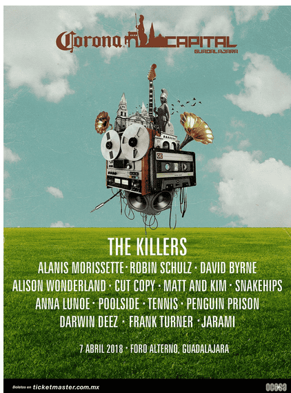 Al son del mariachi fue revelado el cartel de la primera edición tapatía del Corona Capital Guadalajara mismo que será encabezado por The Killers y Alanis Morissette.El cartel lo complementan Robin Schulz, David Byrne, Alison Wonderland, Cut Copy, Matt And Kim y más.El festival será el 7 de abril en el Foro Alterno y tendrá preventa 11 y 12 de diciembre con Citibanamex.Se trata de la primera vez que un Corona Capital se realiza fuera de la CDMX, mismo que desde el 2010 se ha realizado en el Autódromo Hermanos Rodríguez.También LEE Green Day, un espectáculo que regresó a México tras 13 años gracias al Corona Capital
