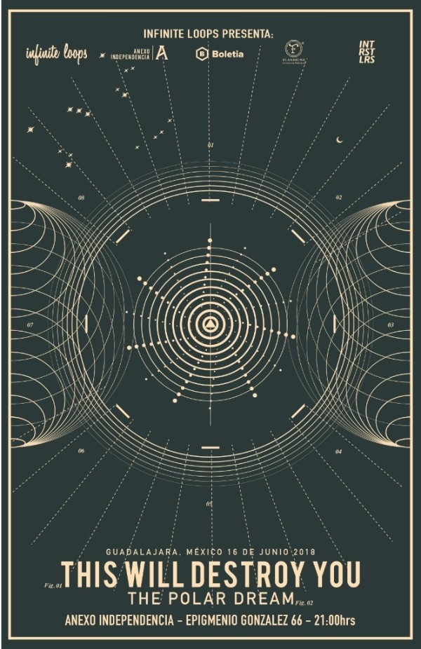 Uno de los pioneros del post-rock mundial This Will Destroy se presenta por primera vez en Guadalajara este 16 de junio en el Anexo Independencia.Como acto telonero una de las bandas más relevantes dentro del post-rock nacional 'The Polar Dream'.Desde 2004, This Will Destroy You se ha forjado como una de las más brutales, dinámicas y precariamente viscerales bandas de rock instrumental del mundo. Su vigoroso calendario de giras, su célebre discografía y el famoso trabajo de soundtrack que han realizado para largometrajes y documentales, les han ganado un considerable y ferviente público internacional.'Another Language', el cuarto LP de larga duración de TWDY, marca un eufórico regreso de un prolongado y vacío período oscuro que amenazaba con romper tanto a la banda como a sus miembros. En lugar de sentirse asfixiados por su experiencia, TWDY se atomizó y posteriormente se renovó, emergiendo con una nueva energia y un reforzado sentido de solidaridad. Como resultado, el disco captura a la banda en su forma más potente, perfeccionada y completamente poderosa, mostrando una unidad edificada y un sentido gradual de escritura de canciones, complejidad tonal y proeza en el estudio.La nueva visión de TWDY llega después de un estado de casi disolución que se produjo después del éxito masivo de su álbum debut en 2006, Young Mountain y su homónimo del 2008. Las luchas personales, los dolores del crecimiento, la pérdida de miembros de la banda y una serie de tragedias cercanas e inoportunas marcaron la pauta para lo que sería el álbum más oscuro e introspectivo de la banda hasta el 2011, 'Tunnel Blanket'.Los siguientes dos años llevaron a la banda hasta el punto de la ruina; como las presiones de igualar los logros de sus dos álbumes anteriores, tuvo un costo casi insoportable. Los espíritus de TWDY se levantaron cuando tanto los cineastas independientes como Hollywood, comenzaron a ver su discografía gracias a su participación destacada en varias películas aclamadas por la crítica, incluida la ganadora del Oscar, Moneyball. La llegada del LP triple de 'Live in Reykjavik' en 2013, fue muy bien recibida por admiradores y críticos, rejuveneciendo aún más a la banda después de años de giras implacables. En octubre de 2013 TWDY regresó a Elmwood Recording, una vez más trabajando con el ingeniero John Congleton, totalmente preparado para construir su próximo trabajo desde adentro.Desde los primeros momentos de 'Another Language', está claro que la banda logró su objetivo. El diálogo de apertura de la guitarra, el órgano coral, y el brillo de "Rhodes en New Topia", flotan sobre ondas antes de ser completamente desintegradas por un choque de guitarras, bajos y poliritmos locomotivos. Estos picos de dinamismo emotivo, están guiados por el hábil trabajo de batería de Alex Bhore, que ofrece una gran cantidad de notas fantasma y cadencias compuestas, que energizan al álbum con una libertad de movimiento totalmente realizada. El espectro de frecuencia de la banda ahora se extiende a nuevas alturas a través de adornos de campanas tubulares, manipulaciones de microcasetes y lavados de retroalimentación de los guitarristas Christopher King y Jeremy Galindo, mientras que el bajista Donovan Jones asegura que las raíces de la banda cavan profundamente en el inframundo de subfrecuencias.Se puede escuchar un realismo terrenal a lo largo de las nueve pistas del material, como si todas sus fuentes de sonido estuvieran tan fuertemente camufladas bajo la manipulación de señales de capas, que su forma original está desgastada hasta el punto de ser irreconocible. Las habilidades de composición se compartieron más que nunca, ofreciendo a TWDY la oportunidad de profundizar en el proceso de escritura con un nivel de cohesión sin precedentes.Forzados a redefinirse a sí mismos como individuos, artistas y como una unidad, Another Language emana un sentido corporal de un viaje formidable, que fue superado para poder llegar a un estado galvanizado de confianza y arte.Boletos físicos en Foro Independencia (Epigmenio González 66, Mexicaltzingo) Teléfono: 01 33 3330 1643 Horarios: Lunes a Viernes 9am- 5pm Sábado 10am-1pm