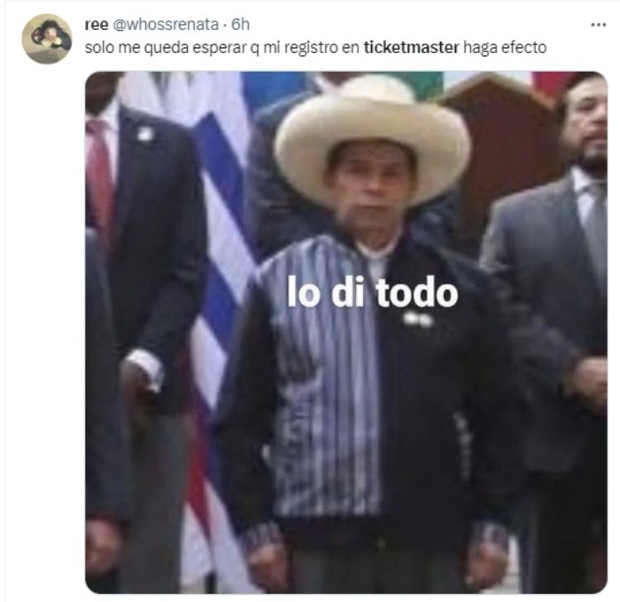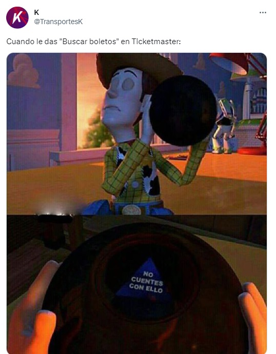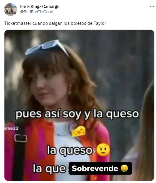 Tayloy Swift se ha convertido en tendencia durante las últimas horas en gran parte de México y en algunos países de Latinoamérica esto luego de que diera a conocer que presentará su gira "The eras Tour" en México, Argentina y Brasil. La noticia logró emocionar a miles de fans, sin embargo, no todo resultó como ellos querían pues se dio a conocer que la venta de boletos se llevará a cabo por Ticketmaster, empresa que ha tenido varios problemas, como la clonación de boletos del concierto de Bad Bunny en el Estadio Azteca. Tras enterarse de por dónde será la venta de boletos, los mismos fans han lanzado memes sobre este tema de las entradas con Ticketmaster, plataforma en la cual deberán registrarse para poder acceder a la venta general.MF