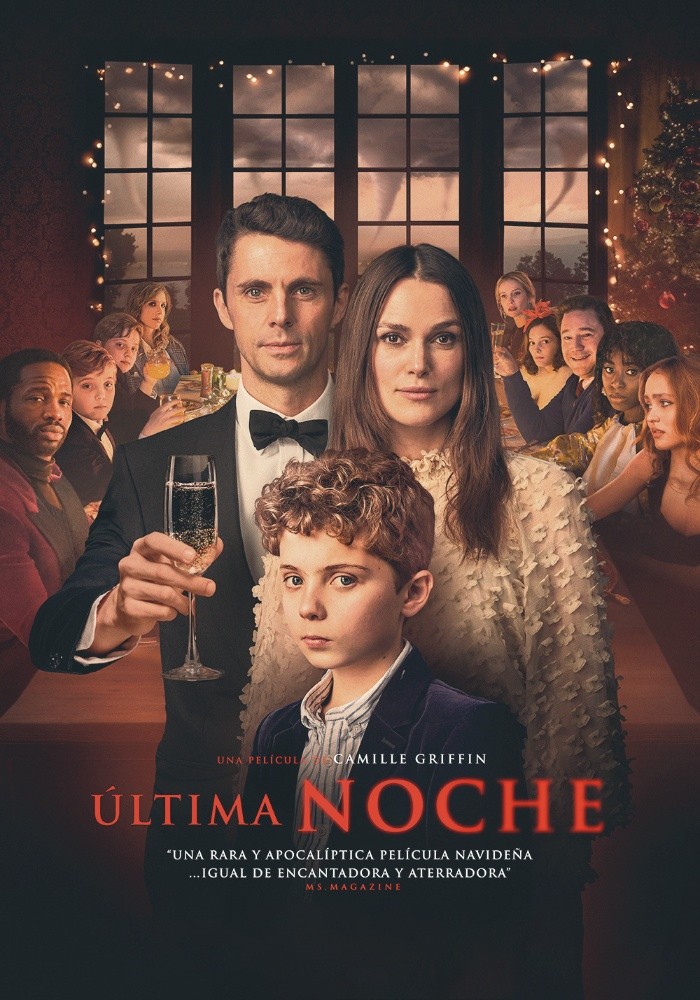 En la campiña inglesa, una familia se reúne para celebrar lo que esperan sea la Navidad más memorable de todas. Dejando de lado sus diferencias (que son muchas) y dispuestos a perdonar (y perdonarse), todos llegan con la genuina mentalidad de que esta sea la fiesta más entrañable que hayan hecho. Pero entre el pavo, las papas horneadas y el brindis, hay algo amargo, como si todo lo que rodea a esta reunión estuviera manchado con un aliento de ruina y tragedia. Pronto descubrimos que este momento de unión es tanto una fiesta...como una despedida, ante un apocalipsis que se asoma en el horizonte.Un virus surgido por el cambio climático que barriendo a la humanidad, causando a quien lo adquiere una muerte casi instantánea, aunque antes hace pasar una dolorosa agonía. Con la nube de la desgracia volando directo a sus puertas (pues el virus se dispersa en el viento), esta familia inglesa (tanto invitados como colados), se prepara para despedirse con un último brindis, si es que no se acaban entre ellos primero.Con mucho humor negro, soberbias actuaciones y un guion redondo llega este 13 de enero a la cartelera mexicana “Última noche” (“Silent Night”, 2021), una cinta protagonizada entre otros por Keira Knightley (“Nell”), Matthew Goode (“Simon”), Annabelle Wallis (“Sandra”) y Roman Griffin Davis (“Art”), bajo la dirección de Camille Griffin.Aunque a primera vista luce como una cinta navideña más, lo cierto es que la película se disfruta en cualquier época del año gracias al mensaje que ofrece. El guion no revela todas sus cartas al espectador hasta pasada la media hora de largometraje, y aun así, se reserva algunas sorpresas a los ojos más curiosos. La premisa de una “última navidad” permite combinar a lo largo de la trama elementos de comedia negra, drama e incluso unos pequeños toques de terror, manteniendo al espectador al filo de la butaca.Navidad agridulceEl espectador tapatío encontrará en “Última noche” un par de rostros bien conocidos. Por un lado Roman Griffin Davis (hijo de la directora del film), quien se robó el corazón de más de uno por su papel de idealista y atolondrado niño nazi en “Jojo Rabbit” y del otro lado Keira Knightley, quien ganó una inmensa popularidad por la saga de “Los Piratas del Caribe”. En esta ocasión, encarnando a madre e hijo, nos ofrecen una actuación tan hilarante como dolorosa.La propia Knightley explicó en entrevista para el portal “Entertainment Weekly” que esta cinta le plantea “el escenario de pesadilla más grande para cualquier madre. Cuando leí el guion por primera vez estaba embarazada de mi segundo hijo y cuando la hice era un recién nacido y no podía deja de pensar, ¿dónde chi... está el humor negro”, ríe la actriz al recordar.“Pero luego me dio mucha risa -agrega- pensar en hacer una película navideña, donde se supone que todo es lindo y musical, pero con un toque apocalíptico. Hay ciertas dinámicas en las películas de este tipo, como por ejemplo la unión de las familias, que en pantalla se suelen ver muy bien pero que sabemos que en la vida real no es así. En esta cinta tratamos de mostrar eso, que unir a nuestros seres queridos no es sencillo, incluso si el final del mundo respirando sobre nuestros hombros”.Lo cierto es que “Última noche” le recordó a Keira “la frágil línea que nos separa de la vida y la muerte. Está siempre allí, pero no la vemos o no queremos verla. En esta película tratamos de mostrarla de forma muy clara”.Los detalles de la cintaMQ