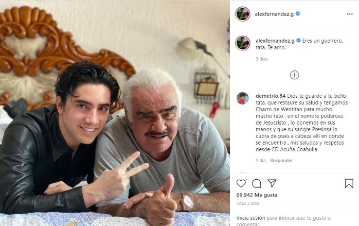 Alex, el menor de la dinastía Fernández compartió con sus seguidores en redes sociales su nuevo tema musical "Buscando El Olvido", en medio de la preocupación que tiene él y la familia por la salud de su abuelo Vicente Fernández, luego de sufrir una caída en su rancho.El hijo de Alejandro Fernández confesó que vive una mezcla de sentimientos al tener que lanzar esta canción, que lleva planeando mucho tiempo, cuando su "Tata", como llama cariñosamente a "Chente", se recupera de la cirugía que le practicaron."Estoy viviendo una mezcla de sentimientos muy profunda, por un lado la emoción de lanzar este nuevo temazo que fue planeado desde hace mucho tiempo y por el otro este momento familiar de oración y preocupación por uno de los pilares más importantes de mi vida", expresó Alex.Alex apeló a las enseñanzas de su abuelo Vicente, y reconoció que para un artista lo más importante debe ser el público, por lo que decidió presentar su nuevo tema."Siguiendo sus enseñanzas, mi Tata siempre nos ha dicho que lo más importante es el cumplir con el público y el amor a nuestra música mexicana, es por eso que hoy, a pesar de todo, les presento con todo mi amor mi nueva canción Buscando El Olvido", se lee.Para Alex Fernández, este tema representa una luz que ilumina este momento tan difícil por el que atraviesa la familia."Espero que les guste y que tal vez nos ilumine un poco este momento difícil. Estaré totalmente concentrado en nuestra familia pero espero estar con ustedes muy pronto. Abrazos".El llamado "Charro de Huentitán" está grave, pero estable y se mantiene semi sedado y con respiración artificial en la unidad de cuidados intensivos de un hospital de Guadalajara, al que llegó de emergencia el pasado fin de semana.De acuerdo con el último comunicado, los médicos aseguran que pese a lo delicado del golpe no hay daño en las funciones cerebrales y esperan que el cantante recupere la movilización "en forma progresiva".Vicente Fernández tuvo una caída accidental en su habitación en el rancho "Los Tres Potrillos" en la que se lastimó las vértebras cervicales próximas al cráneo por lo que fue trasladado en una ambulancia.Este jueves, Fernández Jr. dijo a medios de comunicación que los próximos días serán decisivos para evaluar la recuperación de su padre, quien ha despertado de manera intermitente y está consciente de su situación.***Si te interesó esta noticia y quieres saber más, entonces descarga y descubre INFORMAPlus, la aplicación digital de EL INFORMADOR, en donde tenemos contenidos exclusivos, seleccionados por nuestros editores, para darles una experiencia más completa a los lectores.Descarga la aplicación y pruébala GRATIS por treinta días.Para iOS: https://apple.co/35jaVgbPara Android: https://bit.ly/3gwVSEVSi eres suscriptor de EL INFORMADOR tu acceso está incluido, solicítalo al 33 3678-7777AC