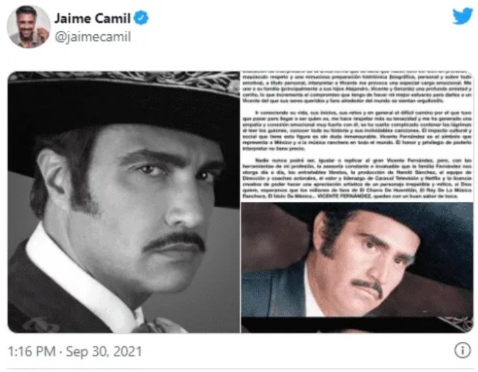 La familia de Vicente Fernández continúa informando sobre el estado de salud de “El Charro de Huentitán” luego de que el cantante dejara el área de terapia intensiva en el hospital de Guadalajara.De acuerdo al comunicado compartido, Vicente Fernández ha tenido una mejoría luego de salir de terapia intensiva; esto “le ha ayudado a tener un mayor avance en la interacción y función”.Informaron que durante los días Vicente Fernández está despierto e interactuando, mientras realiza las sesiones de rehabilitación que son generadas en forma intermitente. “El respirador únicamente con soporte mínimo, cada vez tolera más tiempo en forma espontánea”, detallaron los médicos.Finalmente, agregaron que hasta el momento Vicente continúa sin presentar eventualidades y su evolución en la última semana es muy satisfactoria.“Nos alegra el avance en el estado de salud a la mejoría de Don Vicente que continúa mostrándose fuerte”, finalizó.La familia Fernández Abarca agradeció a los fans y a los medios por estar al pendientes de la salud del cantante, así como por las oraciones y buenos deseos.Entre otros trascendidos relacionados con Vicente Fernández, se confirmó que el actor Jaime Camil será quien interprete al cantante en la serie biográfica que la compañía colombiana Caracol Televisión, la cual llevará la producción de los 36 capítulos que se contemplan para mostrar la vida y trayectoria profesional del “Charro de Huentitán” desde su infancia y los momentos más importantes de su carrera; el proyecto será transmitido por la plataforma de Netflix.“Interpretar a Vicente Fernández es, sin duda, el reto más grande e importante que se me ha presentado en mi carrera. En mi opinión, ´Chente´ es el más grande ídolo de México y el exponente más monumental de la música mexicana en el mundo”, compartió el actor Jaime Camil al confirmar que él llevaría el protagónico de esta serie.Actualmente, Alejandro Fernández y su hijo Alex Fernández, se mantienen en gira nacional con la el tour “Hecho en México”, el cual, además de iniciar en Estados Unidos, llegará a México, siendo Guadalajara una de las ciudades que se suman teniendo al Auditorio Telmex como escenario el 17 de diciembre.AC