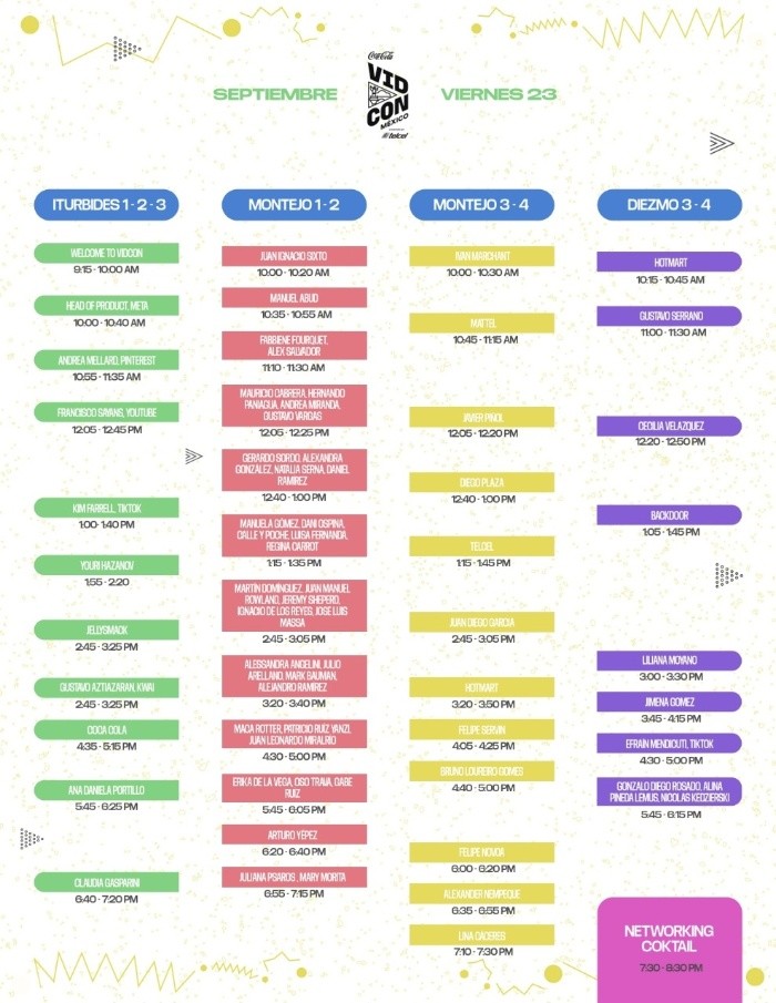 Por primera vez en Latinoamérica, VidCon México traerá a más de 60 expertos ejecutivos de las compañías más grandes del mundo como Coca-Cola, Telcel, YouTube, Mattel, Citibanamex, Meta, TikTok, Spotify y LinkedIn, quienes se presentarán del 23 al 25 de septiembre en el Centro Citibanamex de la Ciudad de MéxicoAdemás, se confirma que Paco de Miguel, uno de los creadores de contenido más famosos del momento, se unirá a la programación de VidCon México, siendo este evento la celebración, en su rubro, más grande del mundo digital y creadores de contenido.Por primera vez en Latinoamérica, VidCon México reunirá a expertos que compartirán sus conocimientos y mejores prácticas para explorar oportunidades económicas, crecer redes sociales e incrementar el impacto de marcas en el mundo digital, cubriendo temas que van desde música, branded content, el stream digital, el futuro de las noticias, influencer marketing, emprendimiento digital, monetización en redes, eSports, Gaming, NFT, Web3, la economía del creador, podcasts, y el futuro de las redes sociales.La programación incluirá conferencias magistrales, charlas, paneles, talleres y sesión de preguntas y respuestas con ejecutivos como:Este espacio es para todos los fanáticos del video en línea, sus creadores y su cultura. Tendrás acceso a pláticas, talleres y sesiones de preguntas y respuestas donde plataformas, marcas y creadores tocarán temas sobre salud mental, incrementar monetización, aprender del fracaso, cómo mejorar cuentas de redes sociales, cómo crear una comunidad digital, cómo ir más allá de las redes sociales y cómo crear verticales exitosas de retos, comedia y moda.Con tu pase de 3 días del track de comunidad podrás tener acceso a los Meet and Greet, talleres de creatividad y conciertos con artistas sorpresa, teniendo entre sus invitados a Juanpa Zurita, Luisito Comunica, Calle y Poché, Kenia Os, Domelipa, Brianda Deyanara, Skabeche, Leyendas Legendarias, Daniela Rodrice, Ántrax y más creadores de contenido.Las puertas del evento abrirán todos los tres días desde las 10:00 horas y las actividades terminarán a las 20:00 horas. Para conocer los horarios y agenda de ambos tracks visita https://vidcon.com/mexico-es/agenda.