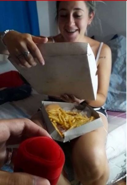 Pedir matrimonio con una caja de milanesas y papas fritas es algo que no se ve todos los días, y por ello es que esta pareja se volvió viral en redes sociales al compartir su historia.Se trata de Nahuel Pedemonte y Lourdes, una pareja de Buenos Aires, Argentina, que se volvió noticia en enero de 2021, según el medio TN. De acuerdo con el medio, Pedemonte recibió un impacto grave de bala en la cabeza el año pasado y fue su novia quien lo cuidó. Tras ir sanando meses después, él le pidió que se casaran con una caja de papas fritas, milanesas y, por supuesto, el anillo.“Fue un pilar importante para mí”, dijo el joven al medio citado. “No me va a alcanzar la vida para agradecerle. Yo sé que voy a estar con kinesiología durante mucho tiempo, pero la verdad es que ando bien. Hago flexiones, me arrodillo. Gané mucha interdependencia con los brazos. Me ayudan a bañarme y cambiarme”.Esta historia de amor se robó el corazón de muchos en las redes sociales, quienes la han compartido. ¿A ti qué te parece esta romántica historia?La boda de esta bella pareja se llevará a cabo en los próximos meses.AC