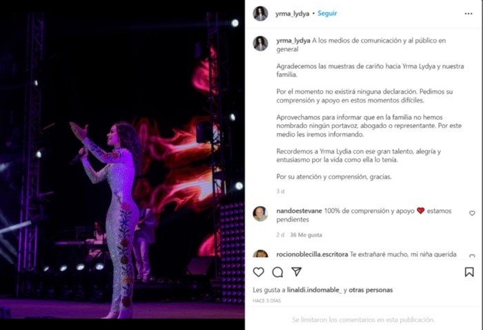 Un video recuperado por la Fiscalía de la Ciudad de México muestra que existe un tercer involucrado en el feminicidio de la cantante Yrma Lydya, quien se ve en las imágenes extraídas de cámaras de seguridad, cómo huye del lugar de los hechos en una camioneta de lujo color rojo.Supuestamente, se trata de Omar “N”, el presunto responsable de haberse llevado el arma con la que Jesús “N” disparó contra Lydya. En un inicio este personaje solo figuraba en reportes extraoficiales y se creía que había depositado el arma en un automóvil abandonado al azar.De acuerdo con autoridades, cámaras del C5 captaron el paso de la unidad sobre Avenida Magdalena y Pasadena, aproximadamente tres minutos después del feminicidio. Se le ve recorrer distintos puntos de la capital, hasta que fue hallada en Jardines del Pedregal. En el interior del vehículo, se encontró el arma usada en el crimen.La pistola es clasificada como una FN Five-Seven semiautomática, conocida popularmente como "matapolicías" y, según declaraciones de autoridades, no se encontraba extraviada.A pesar de que el agente del Ministerio Público de la Fiscalía General de Justicia presentó pruebas suficientes para la vinculación a proceso de ambos implicados, el juez no logró determinar su situación legal, pues la defensa solicitó la duplicidad del término constitucional, por lo que se llegará a un veredicto este jueves 30 de junio.Por su parte, María Jiménez, mamá de la cantante, habló para pedir justicia ante el crimen de su hija perpetrado presuntamente por quien era su esposo, de 79 años."Quiero justicia para mi hija, que no quede impune, sobre todo por todas las mujeres que han sido lastimadas", exigió.Asimismo, David Gamboa, padre de la intérprete, exigió justicia, deseó que no continúen los feminicidios y admitió que su familia tiene "temor" tras el asesinato.AC