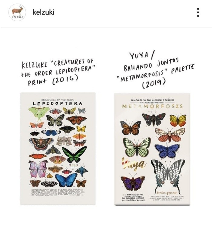 La YouTuber Yuya, quien recientemente fue acusada en Internet de plagiar el diseño para su paleta de sombras “Metamorfosis” a la ilustradora “Kelzuki”, aclaró que éstas están inspiradas en las mariposas.A través de las historias de Instagram, Yuya aclaró que recibió mensajes de la ilustradora donde se acusó de ser semejante, por lo que decidió detallar lo que sucedió.“Nosotros nos inspiramos en libros de botánica antiguos, litografías, en ilustraciones de mariposas y el tono de papel que tomaban estas impresiones a través de los años”, agregó.Yuya añadió en varias historias posteriores varios ejemplos de las flores y mariposas de las cuales asegura haberse inspirado.De acuerdo con la influencer, muchas de las ilustraciones “están basadas en las mismas referencias” presentadas por Yuya y diseñados a mano por sus dos diseñadoras.“Me quería sentar a platicarlo porque para mí es muy valiosa su opinión y sobre todas las cosa, porque estoy bien agradecida con ustedes”, finalizó la youtuber, Mediante una publicación en Instagram, la ilustradora de nombre “Kelzuki” compartió una fotografía donde compara su diseño de un libro publicado en 2016 con título “Criaturas del Orden”, con el diseño de la paleta lanzada recientemente por la influencer.La usuaria pidió ayuda a sus seguidores para compararan el diseño de ambos productos y se comunicaran con la influencer.NM