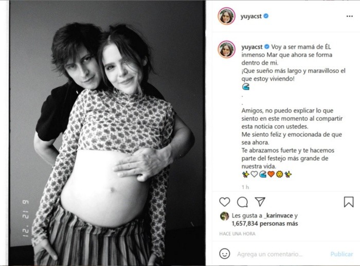Con una foto en blanco y negro junto a su pareja, el músico Siddartha, Yuya anunció que está embarazada."Voy a ser mamá de ÉL inmenso Mar que ahora se forma dentro de mi", escribió la youtuber en su cuenta de Instagram.La también empresaria describió su embarazo como "el sueño más largo y maravilloso que estoy viviendo".Yuya asegura no saber cómo se siente de compartir su embarazo con sus seguidores, aunque agregó que está feliz de que ya haya sido el momento de anunciarlo."Amigos, no puedo explicar lo que siento en este momento al compartir esta noticia con ustedes. Me siento feliz y emocionada de que sea ahora", escribió.En menos de 15 minutos, la fotografía ya acumula más de 300 mil me gusta en Instagram.JM