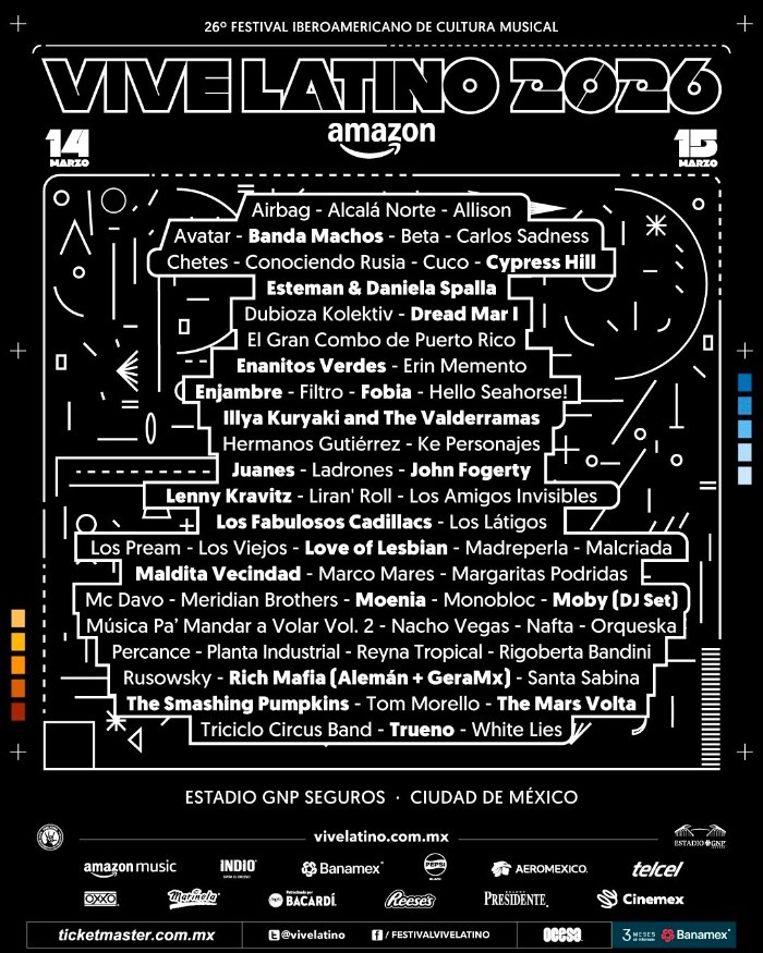 El Vive Latino 2026 reveló su lineup completo y la distribución por días para su edición número 26, que se celebrará el 14 y 15 de marzo en el Estadio GNP Seguros. El festival, uno de los eventos musicales más importantes de América Latina, reunirá a artistas internacionales, bandas históricas y proyectos emergentes que conforman la identidad sonora del encuentro.