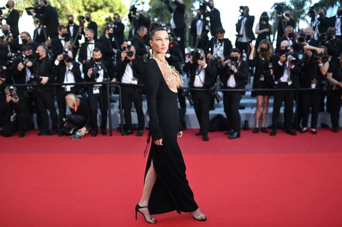 La edición 74 del Festival de Cannes está a punto de llegar a su fin, y definitivamente uno de los aspectos que más llama la atención a nivel internacional de este festival es la alfombra roja, donde se reúne lo último en moda de alta costura. Éstos han sido algunos de los looks más aplaudidos por expertos en moda y fanáticos de la cultura popular. A pesar de no estar relacionada con la industria cinematográfica, la modelo estadounidense es una de las invitadas VIP en eventos como el Festival de Cannes, y este año no ha sido la excepción. Hadid fue bastante aplaudida por el vestido Jean Paul Gaultier en blanco y negro que utilizó hace un par de días ela alfombra roja de Cannes, pero sin duda el que fue más comentado en redes sociales fue el modelo firmado por Schiaparelli, un outfit tomado directamente de la colección de Alta Costura otoño-invierno 2021 de la firma italiana.El vestido color negro destaca por la pieza dorada que cuelga del cuello de la modelo, un par de pulmones dorados que "rinden homenaje a la idea de respirar", según declaró Daniel Roseberry (Director Creativo de la marca). La actriz española Ester Expósito fascinó al mundo entero con un vestido firmado por Etro, el cual tiene una evidente inspiración en la estética de los 70 (tendencia 2021). La actriz de 63 años optó por un vestido firmado por Atelier Versace. Otra celebrity que optó por llevar un vestido Etro a la alfombra roja del Festival de Cannes 2021 fue la modelo Candice Swanepoel. Un look totalmente blanco que a su vez rinde homenaje a la década de los 70, uniéndose a las tendencias de vestidos con espalda descubierta y cuello tipo halter. La modelo y ex primera dama de Francia, Carla Bruni, se convirtió en una de las favoritas en la alfombra roja de Cannes 2021 al llevar un deslumbrante vestido de la marca francesa Celine. Bruni optó por un look totalmente plateado, y joyería de Chopard.