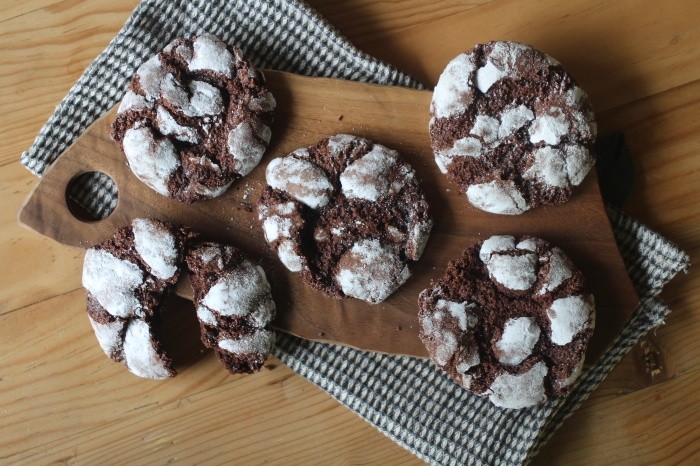 Por: Pilar Muñoz Ingredientes 1 taza de cacao en polvo2 tazas de azúcar de coco o mascabado½ taza de aceite de oliva4 huevos2 cucharadas de extracto de vainilla2 tazas de harina multiuso (o harina integral)2 cucharadas de polvo de hornear¼ taza de azúcar glass (opcional o puede ser monkfruit)Procedimiento: Precalienta el horno a 350 ºF y prepara una charola de aluminio con papel encerado.En un bowl mezcla cacao, azúcar y aceite de oliva. Agrega los huevos uno a uno y bate la mezcla.Añade harina y polvo para hornear, revuelve para que se integren todos los ingredientes.Deja reposar en el refrigerador por tres horas.Haz bolitas y ruédalas en el azúcar glass (opcional). Transfiere a la charola y plasta con la parte de atrás de una cuchara. Hornea por 12 – 15 minutos.Deja enfriar.AA