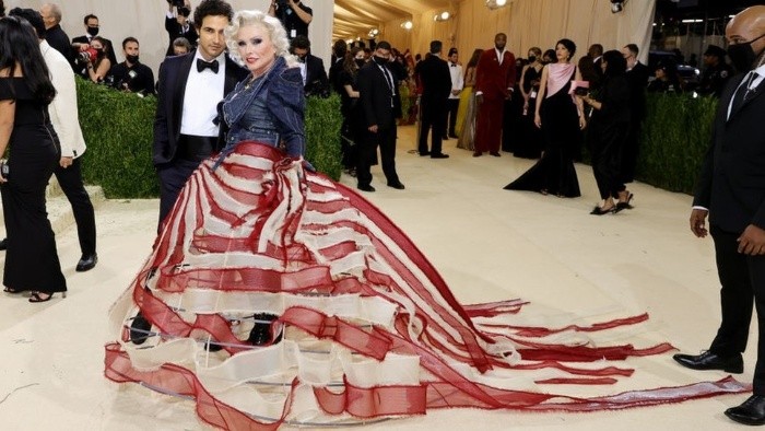 La alfombra roja más esperada y estelar del mundo de la moda se desplegó este lunes en Nueva York.La Met Gala -o la gala del Instituto del Traje del Museo Metropolitano de Arte de Nueva York (Met, por su sigla en inglés)-, reunió a algunas de las celebridades más conocidas del planeta.El evento, que suele celebrarse el primer lunes de mayo, regresó tras haber sido cancelado el año pasado debido a la pandemia de coronavirus.Y aunque sus famosos invitados debieron cumplir las normas para evitar la propagación del covid, incluido el uso de mascarillas en interiores, muchos no se resistieron a buscar el glamour total.El tema del vestuario de este año es "En América: un léxico de la moda", y los looks se inspiraron en todo tipo de cosas, desde la franquicia cinematográfica Matrix hasta la Estatua de la Libertad.El evento tuvo como coanfitriones a la estrella del pop Billie Eilish, la tenista Naomi Osaka, el actor Timothée Chalamet y la poeta Amanda Gorman.Uno de los looks más comentados de la noche fue el de Kim Kardashian, quien cubrió su rostro y cuerpo con un traje negro.El diseño personalizado fue ideado por Demna Gvasalia, directora creativa de la casa de moda Balenciaga.La ganadora de 23 Grand Slam, Serena Williams, fue más colorida, vistiendo un mono con lentejuelas de estrellas debajo de una capa rosa cargada de plumas.Otros asistentes portaron accesorios llamativos para acompañar sus atuendos.Sin una explicación aparente, el cantante Frank Ocean llevaba un bebé robótico verde, mientras que la cantante Grimes blandía una espada.Entre las últimas en llegar a la Gala estuvo Rihanna, quien acaparó la atención del espectáculo en eventos pasados, con atuendos que incluyen un disfraz inspirado en el Papa en 2018.La cantante y empresaria llamó la atención una vez más posando con un abrigo Balenciaga completamente negro, mientras que su novio, el rapero A$AP Rocky, se envolvió en una colcha multicolor.Una celebridad que no estuvo fue la rapera Nicki Minaj, quien dijo que aún no se había puesto la vacuna contra el covid, un requisito para participar en el evento.***Ahora puedes recibir notificaciones de BBC Mundo. Descarga la nueva versión de nuestra app y actívalas para no perderte nuestro mejor contenido.AC