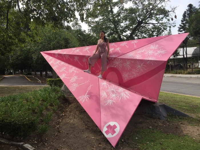 "El diente de león, al igual que el avión de papel, vuela libremente. Las semillas del diente de león usan el viento para llegar a lugares, a veces, muy lejanos a su origen, y una vez que se siembra, crece", ésto nos dice Claudia Navarro Macías, quien participó en la iniciativa de Cruz Rosa y Álvaro Cuevas con la pieza Avión.Claudia piensa que la lucha que se hace en octubre para concientizar a las personas sobre el cáncer de mama puede ser como el diente de león, que el mensaje sea semilla y vuele lejos, que llegue a todos y que siembre la información, la empatía y el amor. Además, el diente de león está relacionado con los deseos y las personas lo usan para soplar sus semillas y al hacerlo piden un deseo, en este caso, su deseo es que la lucha contra el cáncer de mama y el amor por quienes lo viven, vuele y se siembre en todos. + de ClaudiaInició en la pintura desde los ocho años, desde entonces tomó cursos, talleres y clases para aprender más técnicas y poder expresar su creatividad. A los 15 años expuso por primera vez unas de sus obras junto con otras artistas de la zona (Manzanillo, Colima).Estudió Arquitectura y en los últimos 10 años ha hecho murales en habitaciones infantiles, consultorios médicos y espacios públicos. También cuadros decorativos sobre pedido. Tiene siete años viviendo en Guadalajara y hace tres participó en una exposición colectiva por el Día de los Muertos en un centro cultural en Guadalajara y en Zapotlanejo. Hace dos años expuso tres obras junto con otros artistas de esta ciudad. Ganó una convocatoria para plasmar un mural en Casa CEM, sobre Chapultepec, esquina con Guadalupe Zuno. Fueron más de 50m2 de mural.¿Cómo te sentiste al intervenir esta pieza?“Fue una experiencia bellísima, me encantó formar parte de este equipo, principalmente formado por mujeres, unido con una sola causa: apoyar y difundir el conocimiento sobre esta lucha contra el cáncer de mama. Conocer a mujeres como Alejandra Morales y Aldara Alonso es muy motivador e inspirador, además tuve la oportunidad de conocer en persona a artistas que admiro como MC Lancaster y Álvaro Cuevas”.¿Cuáles son los proyectos que tienes actualmente?“Ahora participo en convocatorias y siempre estoy asistiendo a talleres y cursos para seguir aprendiendo. Me dedico a hacer arte decorativo, murales y cuadros sobre pedido, aplicando también el conocimiento que obtuve durante mi formación como arquitecta”.Originaria de: Manzanillo, Colima.Edad: 30 años.Estudios: Arquitectura y varios cursos, talleres, clases de pintura, en diferentes técnicas (acuarela, óleo, acrílico, pintura en aerosol, etc).Artista: Claudia Navarro Macías.Título de la Obra: Deseo.Pieza de Intervención: Avión.Ubicación de la pieza: Montevideo y Av. Américas. Síguela en Instagram: @claudianavarroatelier AA