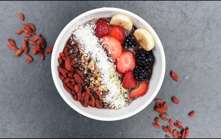 Los bowls han tomado un auge en la sana alimentación, por lo que hoy en las recetas de desayunos saludables aprende a preparar un sencillo, saludable y nutritivo bowl a base de frutos rojos, que puede considerarse un bowl antioxidante.1 plátano1/2 taza de fresas1/2 taza de frambuesa1/2 taza de arándanos1 cucharada de avena1/4 de taza fresa en láminas para decorar1/4 de taza frambuesa para decorar1/4 de taza zarzamora para decorar1/4 de taza arándano deshidratado para decorar1/4 de taza granola para decorar1/4 de taza ajonjolí para decorar-Congelar las el plátano, fresas, frambuesas y arándanos.-Licuar las frutas congeladas con la avena hasta obtener una mezcla suave.-Servir en un bowl.-Decorar con fresas, frambuesa, zarzamora, arándano deshidratado, granola y ajonjolí.Tip: Se puede decorar con otras semillas y si cuesta licuar las frutas se puede agregar un poco de agua.XM