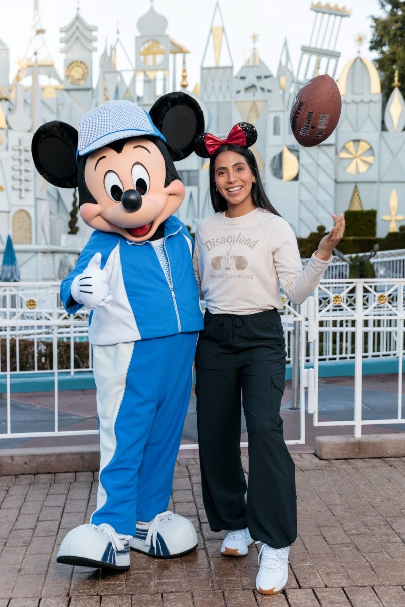Diana Flores, quarterback de la selección mexicana de flag football, viajó a Disneyland Resort en Anaheim, California para encontrarse con Mickey Mouse, el MVP por excelencia del mágico mundo de Disney, juntos posaron para una foto muy deportiva frente a It’s a small world en Disneyland Park.En Disney California Adventure Park fue reclutada por Ant-Man y The Wasp en el Avengers Campus para formar parte de la próxima generación de superhéroes.Diana vivió experiencias extraordinarias durante su viaje y sigue recordando que el impacto positivo y las contribuciones significativas a los demás, pueden llevar a todos y a cada uno a ser los jugadores más valiosos.Diana Flores es quarterback y capitana del equipo mexicano de flag football, protagonizó el comercial de la NFL Run with it en 2023. Y en este 2024, debutará como comentarista de la primera transmisión del Super Bowl que Univisión realizará en colaboración con CBS Sports y la NFL.Con información de Disneyland Resort.XM
