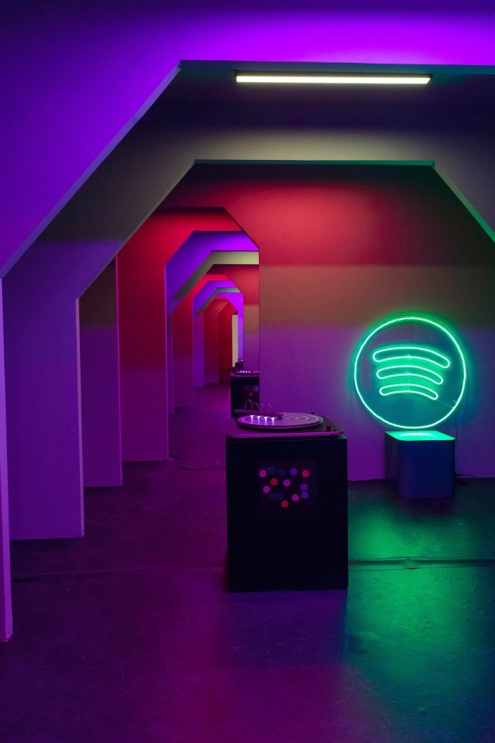 Otra de las colaboraciones estelares de esta edición es CAN PLAY THIS, presentada en esta edición de MUFO por Spotify. Se trata de una instalación interactiva que explora la materialidad del sonido, permitiendo a los usuarios hacer música con sólo tocar colores.