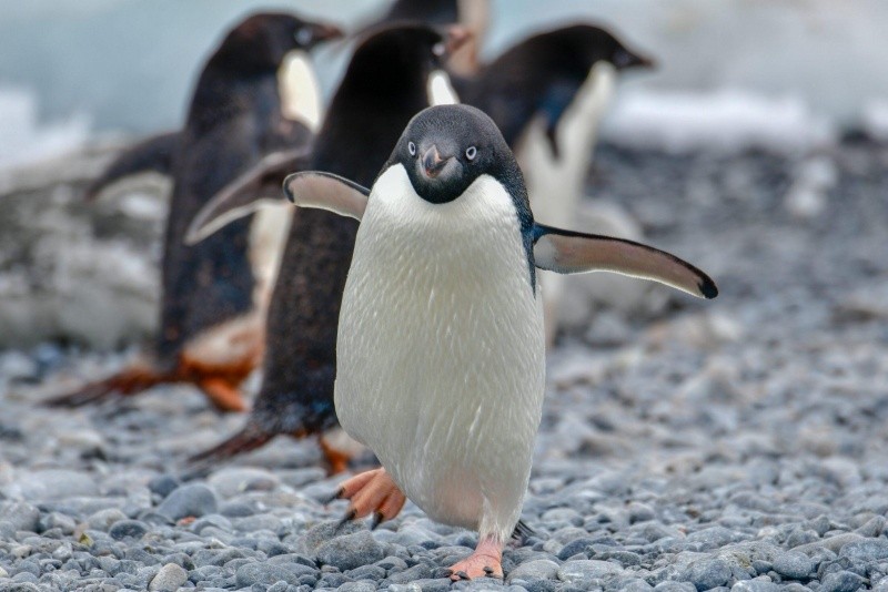 Enero es también el gran escenario de la vida salvaje antártica. Las colonias de pingüinos Gentoo, Adélie y Chinstrap se encuentran en plena actividad: Crías creciendo, adultos alimentándose y un constante tránsito entre el hielo y el mar. En paralelo, las aguas ricas en nutrientes atraen a ballenas que se aproximan a la costa, ofreciendo algunas de las mejores oportunidades de avistamiento de la temporada.
