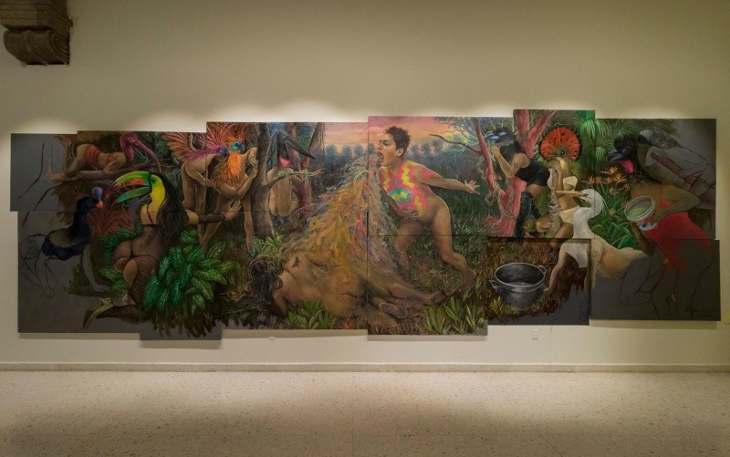 Hace algunos días se inauguró la exposición Purga del artista peruano Christian Bendayán en el Museo de las Artes de la Universidad de Guadalajara (MUSA), en colaboración con la Feria Internacional del Libro de Guadalajara y el Ministerio de Cultura del Perú.Purga es una de las exposiciones de Perú, el país invitado de honor de la FIL, que surge como la necesidad de querer dejar atrás toda aquella producción que fue alimentada durante años de una experiencia casi bibliotecaria y el deseo de empezar a representar sus experiencias personales y espirituales.A raíz de la reacción que tuvo con la vacuna contra el COVID caracterizada por fiebre y vómito, decidió ir a la Amazonia para pasar por una terapia de purga, por lo que en sí es una lectura particular de la Amazonia mezclada con diversos elementos.La selección de piezas, es una exhibición compuesta por un políptico, un video y otras 25 piezas, entre óleos sobre lienzo, azulejos pintados (el mayor símbolo de opulencia amazónica durante la época de explotación del caucho) y dibujo, que representan toda una cosmovisión que parte de la palabra que da nombre a la muestra y gira en torno a Iquitos, ciudad natal del artista, en donde se observa una riqueza cultural y una diversidad que contrastan con otros entornos más tradicionales.Iquitos tiene su lado festivo, con el marcado color verde de la jungla amazónica que al abrirse da paso a letreros coloridos y fosforescencias, ahora plasmados en piezas artísticas que combinan mitos ancestrales con una realidad actual.Christian Bendayán mezcla las leyendas y visiones ancestrales con elementos contemporáneos para delinear un nuevo panorama que él plantea como una transhumanización, esa en la que los individuos se convierten en entes míticos y exóticos con cabida en cualquier lugar, sin ser relegados de forma alguna y con escenas que exaltan el propio ser y su libertad.Purga permanecerá hasta el 27 de febrero de 2022 y puede visitarse de martes a sábado de 10:00 a 18:00 horas y domingo de 10:00 a 15:00 horas. Entrada libre.Con información de MUSA y UdeG.XM