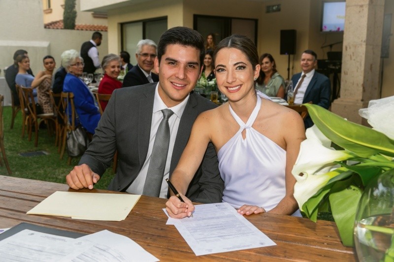 La linda pareja formada por María José Morfín y Rodrigo García de la Vega se dieron el “Sí, acepto” oficialmente en una ceremonia civil a cargo del licenciado Guillermo Zúñiga, en la que estuvieron acompañados por sus papás Alfonso Morfin y Margarita Ontiveros, Mauricio García de la Vega y Carmen Delfín.Para celebrar, los papás del novio organizaron una hermosa y cálida recepción, en la que lució la decoración de Flor y Listón. Entre risas, abrazos, cariño y felicidad, los invitados disfrutaron de una grata convivencia y un delicioso banquete que consistió en un buffet italiano, de postre, se sirvieron tres pasteles de Petit Fours, para acompañar hubo bebidas con vodka, ron, tequila, refrescos y agua mineral; y para el brindis champagne, además también hubo un candy bar. Para amenizar el ambiente se contó con la música en vivo de un dueto.La pareja se conoció en una boda y tras cuatro años de novios Rodrigo le dio el anillo de compromiso a María José en Chapala, para después celebrar con una comida entre amigos y familiares en el Club de golf Chula Vista.Su boda religiosa se llevó a cabo en el Templo del Carmen, durante una hermosa ceremonia oficiada por el sacerdote Luis Rodrigo Núñez, amenizada por Ezequiel Música Sagrada, en la que María José portó un vestido de Bridal con tocado de Lourdes Escanes y Rodrigo un elegante jacket.Después disfrutaron de una gran fiesta organizada por el wedding planner Nelson Pardo, en la que los asistentes deleitaron una banquete servido por La Cocina de Guille acompañado por Ponche del abuelo, tequila, whisky, vodka y ron.El momento esperado llegó cuando María José bailó con su papá el tema Your Song de Elton John, y Rodrigo bailó con su mamá El privilegio de amar de Mijares. Luego los recién casados bailaron su primera pieza como esposos con la canción Lost in love de Air Suply. La pista se abrió y los asistentes bailaron y se divirtieron con la música de Santiago López.AD