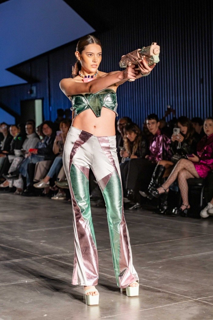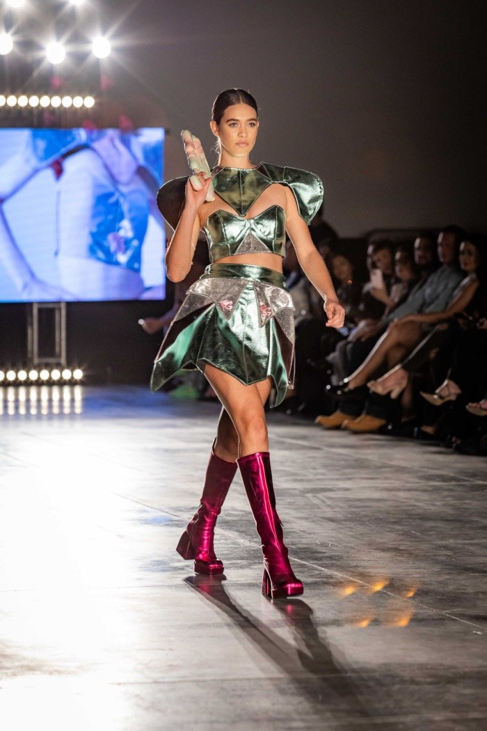 La colección Inocencias está inspirada en una de las etapas más fantásticas y extraordinarias de Paulina Guerrero, contándonos que para ella es un relato de su infancia. Desarrolla cada colección como un viaje para proyectar su arte y autoconocerse, mostrando la interpretación de su mundo y de una mujer sin estereotipos sobre roles de género en su infancia, llevando como catalizador la fantasía que la llevó a volar fuera de la realidad a mundos inimaginables.Inocencias gira en una estética griega galáctica: Caballeros del zodiaco. Los cortes y siluetas son de un guerrero haciendo referencia a sus armaduras, en alta jerarquía por su servicio a la comunidad y luciendo siempre sus mejores trajes.Se define por la fuerza y las líneas geométricamente trazadas para una composición compleja y estética evocando a la tecnología con formas asociadas al futurismo, una mezcla de siluetas hiper femeninas, fuertes e imponentes que además son dulces sin caer en lo cursi, encontrando un exquisito equilibrio.La colorimetría está compuesta por una gama de tonos eléctricos y vibrantes con destellos fantásticos de galaxias y misticismo. Se crea una composición de colores infantiles femeninos influenciados por juguetes de la década de los noventas icónicos como Polly Pocket y una gama infinita de productos.Inocencias rompe estereotipos que muestran la complejidad de la mente de un niño que va más allá de las estructuras sociales porque él sólo quiere divertirse. CP