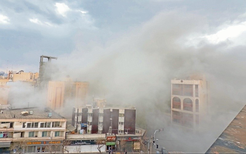 El humo envuelve una calle tras un ataque en Teherán, Irán. AFP