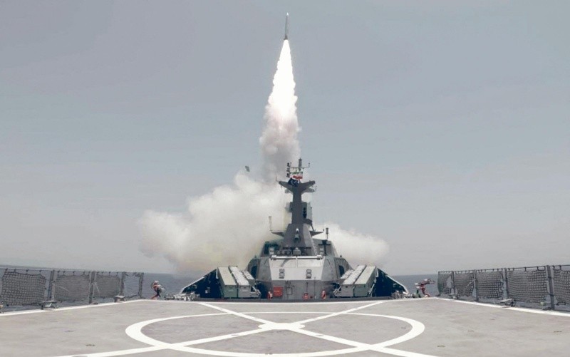 La imagen muestra el lanzamiento de un cohete durante un ejercicio militar conjunto de la Guardia Revolucionaria y la Marina en el estrecho de Ormuz, en medio de maniobras en esa vía marítima estratégica. AFP