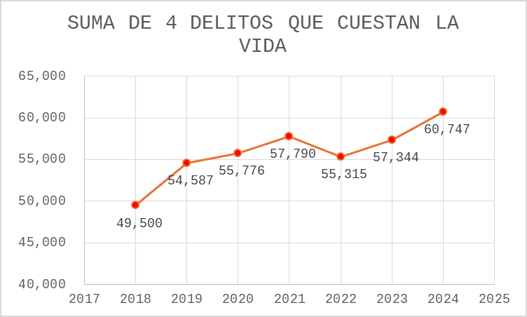 Por si a alguien le quedaban dudas de que ya murió el “abrazos no balazos”, el secretario Omar García Harfuch se encargó de despejarlas el viernes en su reunión con diputados de Morena: “cualquier tipo de diálogo con las organizaciones criminales es un espejismo y siempre, siempre, siempre, sale mal”, dijo el funcionario de todas las confianzas de la presidenta Sheinbaum.La frase es también la mejor prueba que la estrategia de seguridad de López Obrador fracasó. Ya la semana pasada en estas Historias de Reportero le mostré gráficas con datos oficiales que exhiben la falsa narrativa del ex presidente sobre la violencia. AMLO insistió en decir que su estrategia funcionaba porque los homicidios iban a la baja. Era mentira. Estaba escondiendo asesinatos como desapariciones. Y así, mientras bajaban los homicidios dolosos, subían las desapariciones.Hoy le presento más datos oficiales contundentes que apuntan en la misma dirección.La siguiente gráfica suma 4 tipos de delitos que están relacionados con la pérdida de la vida: homicidios dolosos, desaparecidos no localizados -tristemente suelen ser muertes-, feminicidios y “Otros delitos que atentan contra la vida y la integridad corporal” (ese es el nombre oficial de la clasificación). Al sumarlos, se evita que puedan esconderse asesinatos como desapariciones u “otros delitos que atentan contra la vida”. Los propios datos oficiales muestran que el número de víctimas fue creciendo en el sexenio de López Obrador. El 2024 es el año más violento en la historia del país, así lo dejó López Obrador.Obviamente está prohibido en el gobierno actual decir algo contra López Obrador. Eso es pecado mortal y traición a la patria. Hasta el discurso de Harfuch es que la estrategia iniciada desde el sexenio pasado está dando frutos y que la suya es la continuación. Claramente esto es falso. Otro dato lo demuestra: en el sexenio actual se han duplicado las detenciones de presuntos delincuentes. Sí, el doble.Manipular las cifras en las mañaneras para generar la idea de que se va mejorando me parece una mala herencia, una mala práctica y un mal inicio. Luego se terminan creyendo ellos mismos sus mentiras. La presidenta que presume con tanta frecuencia las encuestas que le dan más de 80% de aprobación, debería también darse cuenta que esas mismas encuestas señalan que la gente no aprueba su gestión en materia de seguridad.Por lo pronto en los primeros tres meses de gobierno de Sheinbaum, de octubre a diciembre del 2024, el promedio registrado de la suma de los 4 delitos que cuestan la vida fue de 163 al día, superando el promedio diario del sexenio de AMLO que fue de 155 al día.