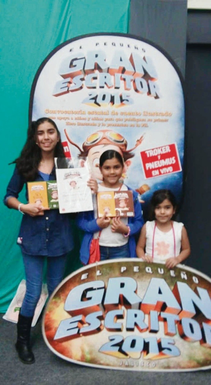“El Gran Escritor”, editorial Artesanal, surge en 2014 a la par del proyecto “El Pequeño Gran Escritor”. -“Nos definimos como un grupo de adultos que se rehúsan a crecer. Nos aferramos a la imaginación desde nuestra infancia y no la hemos soltado. En nuestras filas hay desde actores, directores de cine, guionistas, animadores, publicistas, escritores, fotógrafos, sonidistas, cuentacuentos, arma líos, revienta aburrimientos, cantantes de regadera, bailarines de escalera, moneros, grafiteros, garabateros, trapecistas del volante, astronautas del colchón, cazadores de ideas, arquitectos de sueños y uno que otro letrado…”De este fascinante proyecto, su director editorial es Gavo Casillas y Teresa Sánchez Vilchis, e ilustrado por Yazz Casillas. El trio, Dueñas Díaz, nos narran su experiencia en estas convocatorias:DANIELA; “La Niña Maravilla”: “La primera convocatoria fue para niños de 5 a 13 años, y en el 2015, participamos mil 700, siendo seleccionados 50 finalistas, depurando a quedar 12 y finalizando sólo tres ganadores, que fuimos acreedores a la Mención Honorífica, diploma y un curso gratis de escritura. Yo participé con un cuento que escribí cuando estaba en 5° año y tenía 11 años, titulado, ‘Las aventuras del Pirata/ Capitán Confort El Comefort (y otros detalles)’. Abrirán otra convocatoria, ‘El Pequeño Joven Escritor’, edades de 14 a 17 años, donde espero participar nuevamente. Recibir tu Mención Honorífica, ver tu cuento publicado y recibir estas distinciones en el marco de la FIL, es muy motivante. Mi cuento no se ilustró por extenso, yo introduzco mucho detalle y sin decir fechas ubico al lector en la época de mi relato, como acontece con el cuento ganador ubicado en el siglo XVIII. Siendo fanática de los detalles, me acarrea problemas, porque toda acción tiene una reacción, y mis escritos no parecen cuentos, es mi forma de expresarme, haciendo que cada libro sea diferente. Opino que no debe compararse un escritor con otro, cada uno tiene la manera de llevarte a ese mundo, a ese momento de desconectarte del todo, y cada escritor con su estilo te lleva a donde quiera él que estés. Es una perspectiva de cada quien. Uno de los consejos cuando escribimos cuentos, nos dicen que cuando tienes tu estructura bien, tienes que transformarlo en un esqueleto, quitarle los nexos, detalles que no son relevantes, un cuento es una esencia del todo. En una novela se pueden incluir más detalles, investigar a fondo un personaje, el cuento tiene que ser rápido y que impacte. Como todo lo que se ejerce, he tenido mis dudas, hubo un momento en que sentía había sido suerte y me decían: ‘como de mil 700 quedaste en Mención’”.SAMANTA; “Super Wolf”: “Dani cuando leía se emocionaba mucho y me motivó a leer, me inicié leyendo, ‘Dorothy tiene que morir’, la trilogía, ‘Canciones para Pablo’, y a dúo escribimos: ‘Anacleto Mocletes’, ganamos la Mención Honorífica en el 2016, en la misma convocatoria, ‘El Pequeño Gran Escritor’. E individualmente envié el cuento, ‘¿Pelos?’, conquistando otra Mención Honorífica en el mismo año y fue muy emotivo recibir mi distinción en la Feria Internacional del Libro”.TÁBATA: “Tengo 9 años y empecé a leer viendo a mis hermanas concursar, yo también tuve ganas y mi papá me preguntó si quería escribir un cuento, le dije que sí y redacté, ‘Los dedos locos de la tía Brenda’, que ya mandé al concurso, sólo espero noticias. Estoy leyendo ‘Natasha’, es una recopilación de cuentos y no trata un tema específico, voy a librerías y en Gandhi elegí éste”. Cuando entrevistaba a estas hermanitas, alumnas del colegio Febres Cordero, resalta la armonía familiar, cómo el padre todas las noches les leía cuentos fomentándoles el gusto por la lectura, y su madre es arquitecta con Maestría, las tres hablan de sus padres con amor y admiración. Tienen un léxico muy fino y profuso para expresarse. En estos tiempos en que la lectura no es prioritaria, leen y no descuidan sus estudios, se distinguen por ser de las mejores alumnas. Daniela, la hermana mayor, es el eje, Samanta y Tábata elogian la inspiración y facilidad que tiene para de un objeto común, construir una fábula. Mención especial para este proyecto, “El Pequeño Gran Escritor”, y a estas tres pequeñas escritoras en ciernes, ejemplo a seguir en esta ciudad.