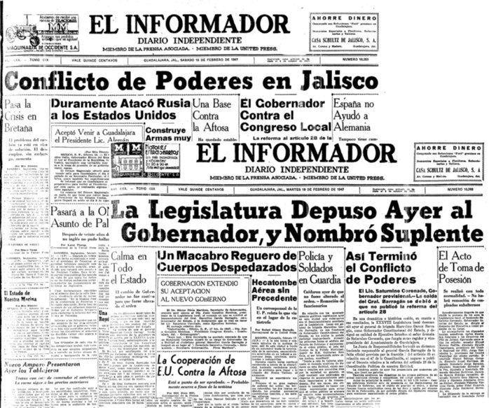 En 100 años, ha corrido mucha agua bajo el puente del escenario político de Jalisco. Desde las épocas revolucionarias, las décadas de un partido hegemónico, la creación de las instituciones públicas, el impulso de herramientas de participación democrática y la modernización del sistema; cada momento con sus singularidades y características que lo definen. Historias que van desde los constantes cambios, llegadas y salidas de autoridades, acciones y hechos que dieron forma a una sociedad más involucrada, informada y exigente. En el otoño de 1917, el naciente diario EL INFORMADOR dio cuenta del ir y venir de las licencias solicitadas por el gobernador Manuel M. Diéguez Lara, que dejó en el cargo a Emiliano Degollado Carranza, quien era magistrado del Supremo Tribunal de Justicia del Estado. Apenas llegó a la titularidad del Poder Ejecutivo estatal, Degollado Carranza ordenó la clausura de ocho templos de Guadalajara incluyendo la Catedral, bajo la acusación de que en ellos se incitaba al pueblo contra el Gobierno. Se aprehendieron algunos sacerdotes y se redobló la búsqueda del arzobispo Francisco Orozco Jiménez, a quien se le acusaba de alentar la oposición a la Revolución. El 9 de noviembre de 1917, el gobernador promulgó la Ley Orgánica Electoral, en la que se establecía por primera vez la elección directa para munícipes, diputados y gobernador.El año 1939 pasó a la historia de Jalisco con la peculiaridad de que tuvo seis gobernadores en cuestión de meses. Al finalizar el periodo del gobernador Everardo Topete, desfilaron por el puesto de titular del Poder Ejecutivo Ignacio Jacobo, Juan Aviña López, Clemente Sepúlveda y Miguel Guevara; quienes tuvieron la responsabilidad sólo durante semanas o días y no se tiene mayor registro de lo que hicieron. Tras meses de cambios constantes, el primero de marzo de ese año asumió el cargo de gobernador Silvano Barba González.Las crónicas describen el acto al más puro estilo presidencialista, con besamanos y evento multitudinario. Incluso en la sección de espectáculos de ese día, entre los anuncios de la variedad de la jornada, se publicó una felicitación del cómico Mario Moreno “Cantinflas” al nuevo gobernador jalisciense y al presidente de México, Lázaro Cárdenas, que visitó Guadalajara para asistir a la toma de posesión. Además de cobrar cientos de vidas y dejar una cicatriz en Guadalajara, las exposiciones del 22 de abril de 1992 cimbraron el escenario político del Estado. Nueve días después de los hechos en el Sector Reforma, el gobernador Guillermo Cosio Vidaurri presentó su licencia al cargo. La solicitud fue aprobada por el Congreso en una sesión que duró 10 minutos. El legislativo nombró a Carlos Rivera Aceves como gobernador interino. Además de la salida de Cosio, de la administración estatal, las exposiciones en la zona de Analco provocaron que Enrique Dau Flores dejará la presidencia municipal de Guadalajara, que había asumido menos de un mes atrás, y junto con Aristeo Mejía Durán titula del Siapa, fue detenido para enfrentar un proceso penal como presuntos responsables de la tragedia. Tras siete meses en prisión, el ex alcalde Dau Flores, Mejía Durán, tres empleados del Siapa y cuatro trabajadores de Pemex obtuvieron la libertad bajo fianza.Un donativo de 90 millones de pesos para la construcción del Santuario de los Mártires desató una lluvia de críticas e inconformidad contra el gobernador Emilio González Márquez. En marzo de 2008, González Márquez entregó la primera parte del apoyo, en un cheque por 30 millones de pesos. La justificación de que la obra sería un imán de turismo religioso no bastó para calmar los cuestionamientos.En medio de las criticas, el gobernador anunció otro donativo, ahora por 15 millones para la Asociación Mexicana de Bancos de Alimentos (AMBA). El mandatario estatal hizo gala de un lenguaje “florido” para descalificar las críticas generadas. Luego de manifestaciones y quejas ante la Comisión Estatal de Derechos Humanos, González Márquez tuvo que disculparse por sus expresiones “coloquiales” y el cheque entregado para la construcción del santuario fue devuelto a las arcas públicas. El recurso dado a la AMBA no se regresó y un año después del escándalo fueron donados otros 15 millones.Destituido por el Congreso del Estado, Marcelino García Barragán dejó el cargo como gobernador de Jalisco el 17 de febrero de 1947, dos semanas antes de cumplir con su periodo. Diputados de la Legislatura 38 desconocieron a García Barragán por haberse negado a publicar una reforma para ampliar de cuatro a seis años el periodo de las administraciones estatales. La polémica era sobre si la ampliación tendría que aplicarse al entonces gobernador electo Jesús González Gallo. Según trascendidos de la época, lo que le costó la gubernatura a García Barragán fue no haber apoyado a Miguel Alemán en la candidatura presidencial.Luego de salir por la puerta de atrás, García Barragán se reposicionó y fue comandante de las zonas militares de Querétaro y Toluca, en el sexenio de Adolfo López Mateos. Con Gustavo Díaz Ordaz fue secretario de la Defensa, por lo que estuvo al frente del operativo para desarticular el movimiento estudiantil de 1968. Aún está fresca en la memoria reciente la polémica del magistrado Luis Carlos Vega Pámanes, que puso en jaque al Poder Judicial e involucró al Congreso y gobierno estatal. Luego de ser acusado de abuso de poder, tráfico de influencias y la publicación de sus antecedentes criminales, quien fuera presidente del Supremo Tribunal de Justicia del Estado de Jalisco renunció a su cargo el 10 de noviembre de 2016, ese mismo día el Poder Legislativo aprobó por unanimidad que se retira, luego de semanas de señalamientos en su contra.Siete solicitudes de juicio político, un escándalo mediático por presuntamente haber solicitado a la Policía de Guadalajara liberar a dos deten