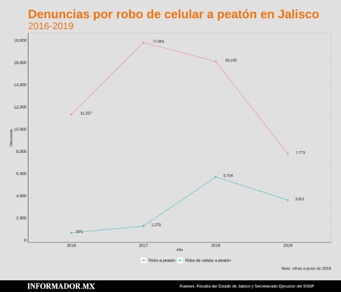 «Vete corriendo antes de que te meta un plomazo». Esa orden recibió Eusebio del ladrón la última mañana del 2018 después de despojarlo de dos celulares en el puente peatonal de Avenida Lázaro Cárdenas y Héroes de Nacozari, en Guadalajara. Eusebio cerró ese día, sin saberlo, la estadística de un año sin precedente.El delito de robo de celular a peatón repuntó de manera exponencial entre 2016 y 2018 en Jalisco. Creció de 671 denuncias a 5 mil 704, según datos de la Fiscalía del Estado –ocho veces más atracos en un trienio, si hemos de confiar en las cifras oficiales–.Pero si incluimos la cifra negra, calculadora en mano, el año pasado se robaron en realidad 223 celulares al día que representan un botín de 1.1 millones de pesos diarios al ponderar un precio promedio por aparato de cinco mil pesos, un monto estimado que utiliza el Observatorio Nacional Ciudadano.Este incremento en el robo de celulares también revela otro fenómeno: cada vez en mayor medida un asalto a peatón está orientado a despojar a la víctima concretamente de su celular. Es lógico. Sólo en la Zona Metropolitana de Guadalajara (ZMG) hay un “atractivo” mercado de 3 millones de usuarios de smartphone. De hecho, el segundo mercado más grande en el país después de la Zona Metropolitana del Valle de México.En pocas palabras, el peatón es la escala más pequeña y vulnerable en la seguridad pública. Por eso, junto con el homicidio doloso, el robo a transeúnte es uno de los delitos que debería concentrar el esfuerzo de las autoridades para reducirlo. Y no sólo a partir del inútil «expansionismo» o «populismo penal» –tipificar nuevos delitos o aumentar las penas– ni de una estrategia exclusivamente policial sino con la creación de una cultura de bloqueo de aparatos, denuncia y reporte para inhibir los atracos.El panorama no es alentador para este año. Hay un contexto de pérdida de empleo en el país y el Estado que favorece estos delitos que podríamos llamar rutinarios y cometidos mayormente por delincuentes menores.***Una lección (no) aprendidaLa lección en la Ciudad de México puede ayudarnos a experimentar en cabeza ajena. A mediados de 2018, el Observatorio Nacional Ciudadano advirtió de un repunte inédito en el robo de celular a peatón. El organismo denunció que la Procuraduría capitalina tenía un subregistro del ilícito al contabilizarlo como “Otros robos” cuando la ley obliga a desagregarlo. De esta manera, el gobierno de la Ciudad de México reportaba mes a mes una reducción en el robo a peatón y al mismo tiempo un aumento atípico en el apartado “Otros robos”.Tras presiones de la sociedad civil y la llegada de Claudia Sheinbaum al gobierno, el delito comenzó a reclasificarse adecuadamente y reveló sus verdaderas dimensiones: entre 2016 y 2018 el fenómeno se había triplicado. Una “epidemia” de casi 859 robos de celulares al día si añadimos la cifra negra –93% de delitos que no se denuncian– y un botín de 4.2 millones de pesos diarios.Este año finalmente se tomaron medidas para reducir la incidencia tras una iniciativa de Sheinbaum enviada al Legislativo local. La reforma aprobada en la capital, además de elevar la pena de dos a seis años de cárcel para quien cometa este delito con violencia, prohibió la venta de aparatos en tianguis para evitar el mercado negro.De manera paralela, el gobierno capitalino lanzó la campaña #BloqueaTuCel para desalentar el ilícito. Porque, ¿quién sabe bloquear su celular si se lo roban? Una de las razones por las que resulta tan lucrativo el negocio es porque los delincuentes no enfrentan obstáculos para reusar y revender los aparatos. De ahí que la participación activa de los usuarios es vital para acotar el margen de maniobra de los criminales.Además el gobierno de la Ciudad de México habilitó no una ni dos sino cinco alternativas para bloquear tu celular si es robado. Sólo es necesario contar con el código IMEI (International Mobile Equipment Identity) que se obtiene al marcar *#06# desde tu teléfono. El capitalino puede reportarlo vía Locatel o mandar un mensaje en Twitter a las cuentas @Claudiashein o @GobCDMX. Una tercera opción es vía la aplicación móvil Alameda Central. También es posible hacerlo a través de la página web bloqueatucel.cdmx.gob.mx o solo con enviar un mensaje de texto desde cualquier celular al 30303.Este año, el gobierno de la CDMX reporta una baja en la incidencia del ilícito. También ha informado de la detención de varias bandas de robo de celular en el metro y todo indica que logrará reducir el delito.Hace más de un mes, el gobernador Enrique Alfaro pidió a su Coordinación Estratégica de Seguridad una revisión del modelo de la Ciudad de México para inhibir el robo de celulares. No ha habido noticias del asunto. En el Congreso local, el diputado Javier Romo tiene una propuesta jurídicamente deficiente que busca encarcelar a quienes compren un celular robado, pero no propone mecanismos de bloqueo y denuncia. Sin una estrategia clara y la lucha activa de la sociedad contra este fenómeno, es poco creíble que Jalisco pueda seguir los pasos de la capital.La pérdida de la ciudadLa urgencia de frenar este ilícito es también porque desemboca en otros delitos como el fraude, la extorsión y el secuestro. Además de que representa el mayor volumen de delitos relacionados con el patrimonio de las personas. De hecho, el asalto a transeúnte en la calle o transporte público es el delito más cometido en la Zona Metropolitana de Guadalajara. Concentran el 21.1% de todos los ilícitos que se cometen en la urbe.Cuando a un peatón lo despojan de su celular en un asalto pierde algo más que un objeto de valor. Con el aparato, la mayoría de las veces pierde y expone información personal, contactos, un resguardo digital de imágenes y videos. Es más que un simple delito patrimonial. La víctima también pierde parte de su identidad, pero sobre to