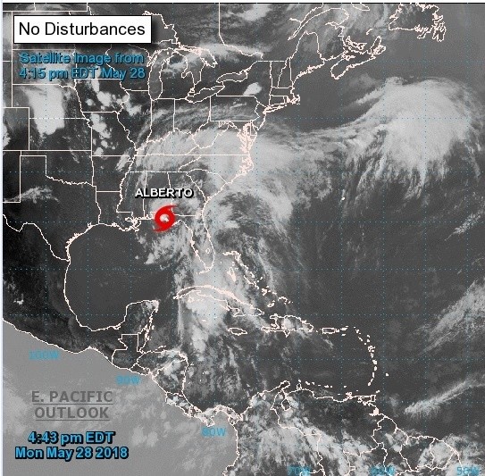 La tormenta subtropical "Alberto" tocó tierra el lunes en el noroeste de Florida, informó el Centro Nacional de Huracanes.Alberto ingresó en Laguna Beach, Florida, a unos 24 kilómetros (15 millas) al oeste-noroeste de Panama City.Según los meteorólogos, los mayores peligros de la tormenta son los aguaceros y las inundaciones repentinas en su avance sobre tierra firme.Alberto se desplazaba hacia el norte a 14 kph (9 mph).Se prevé que la tormenta se debilite durante su avance por el interior de la zona. Sin embargo, los expertos señalan que provocará fuertes aguaceros en partes del noroeste de Florida, Alabama y Georgia, lo que conlleva el peligro de inundaciones repentinas. JB
