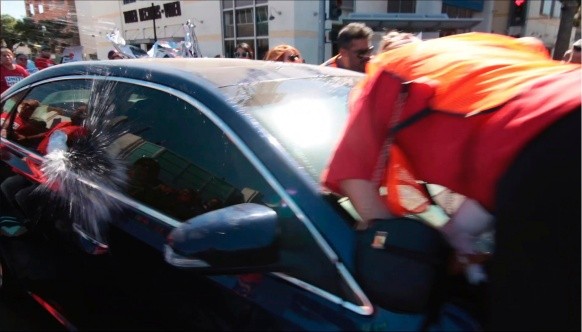 Un hombre usó su automóvil para abrirse paso en una marcha a favor de los derechos de los inmigrantes en el sur de California el jueves, causando lesiones a varias personas, indicaron las autoridades. El conductor fue arrestado.Algunos participantes en el evento en la ciudad de Brea presentaron heridas leves, pero ninguno solicitó primeros auxilios, declaró el jefe policial de Brea, Jack Conklin.Los manifestantes organizaron la marcha por el sur de Los Ángeles para exhortar al congresista republicano Ed Royce a apoyar un programa migratorio temporal que beneficia a ciudadanos de varios países de Centroamérica, dijo Andrew Cohen, un vocero de Unite Here Local 11, un sindicato que representa a trabajadores de hoteles, del sector alimentario y de aeropuertos.Un video difundido por Cohen muestra al auto abrirse paso por una fila de manifestantes que marchan en un cruce peatonal en una intersección.Una mujer que participaba en la marcha golpeó el capó del auto al ser empujada por el vehículo y otro manifestante se subió al auto en movimiento. Agentes de la policía llegaron rápidamente al lugar, detuvieron el auto en medio de la intersección y ordenaron a los manifestantes que se alejaran.El jefe de la policía agregó que los oficiales arrestaron al conductor.