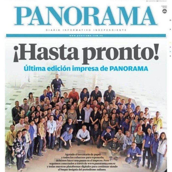 El diario venezolano Panorama publicó este martes su última edición impresa tras 104 años de circulación, al verse asfixiado por la falta de papel, una suerte que ha corrido casi toda la prensa escrita local en medio de la crisis política y económica."Tratamos de prorrogar la existencia de nuestro papel. Pero, pese a tanto esfuerzo, hoy, con el corazón arrugado, tenemos que presentarles nuestra última edición impresa", reseñó en su editorial el medio más antiguo del estado Zulia.De línea independiente, Panorama era el único medio impreso que sobrevivía en Zulia, región afectada desde hace una década por apagones energéticos que recrudecieron el pasado 7 de marzo, contrayendo aún más la economía de la otrora próspera zona petrolera."Antes de llegar aquí hemos batallado en la búsqueda de divisas para los insumos necesarios (todos importados: planchas, tinta y el costosísimo papel). También hemos soportado el terrible peso de la crisis económica que sacude al país", subrayó el medio.El cierre de 75% de los comercios de Zulia en el último año, según cifras de la patronal Fedecámaras, provocó una caída abrupta de la pauta publicitaria en el diario, que ya había limitado la cantidad de ejemplares en circulación y se enfocará en su versión web."Nos tocará migrar a las plataformas digitales, reinventarnos para seguir informando y así vencer los obstáculos", declaró a la AFP Deivis Rodríguez, editor de política y economía con más de 15 años en la empresa.Panorama asegura que sus finanzas también se deterioraron por los continuos aumentos salariales decretados por el gobierno de Nicolás Maduro que, a su juicio, apenas han servido de "combustible a la inflación" y no toman en cuenta la "capacidad de la empresa privada para hacerles frente".Desde 2013, más de un centenar de medios cerraron en Venezuela, entre éstos se encuentran 70 periódicos. Ese año fue creado el Complejo Editorial Alfredo Maneiro, una corporación estatal que monopoliza el manejo del papel y a la que un sector de la prensa acusa de actuar con sesgo político.En diciembre de 2018 dejó de circular la edición impresa de El Nacional, emblemático diario fundado en 1943 por el literato venezolano Miguel Otero Silva. También cerró -en diciembre de 2016- El Impulso, el más antiguo de Venezuela con 114 años.JM