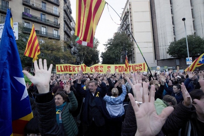 Varios cientos de manifestantes independentistas catalanes se congregaron este domingo en Bruselas y exhortaron a la Unión Europea a "defender la democracia" en Cataluña en nombre de "los valores que fundaron Europa"."Qué vergüenza, Europa", se leía en algunas de las pancartas de los manifestantes, reunidos en un parque de Bruselas cercano a las instituciones europeas.A la protesta, organizada por asociaciones independentistas de Bélgica, Holanda y Luxemburgo, asistieron eurodiputados favorables a la independencia y miembros del gobierno catalán destituido, pero no así el dirigente independentista catalán Carles Puigdemont, quien lleva días en Bruselas."Europa, tu futuro depende de lo que hagas con Cataluña", declaró Antoni Comín, uno de los cuatro miembros del gobierno regional destituido e instalados en Bélgica, junto a Puigdemont, desde el 30 de octubre."La Unión Europea se construyó para garantizar que el fascismo y el totalitarismo no regresaran jamás", añadió Comín entre aplausos."La democracia en España no solo está enferma, sino prácticamente muerta", consideró por su parte el eurodiputado Josep-Maria Terricabras, del partido separatista Izquierda Republicana de Cataluña (ERC), un día después de una masiva manifestación en Barcelona reclamando la libertad de los dirigentes independentistas encarcelados en España."Es absolutamente terrible que las instituciones europeas no comprendan que cuando se ataca a la democracia, no se puede aplaudir al (presidente del gobierno español, Mariano) Rajoy, y a las instituciones en España que actúan fuera de la ley", acusó el eurodiputado.En medio de las "esteladas", la bandera independentista catalana, podían verse varias banderas de Flandes --muestra del apoyo del independentismo flamenco a la causa catalana--, pero también de Valonia, de Gales y vascas.Puigdemont y los otros cuatro responsables independentistas regionales son objeto de una euroorden de arresto emitida por España.Un juez de instrucción belga los dejó en libertad sin fianza a la espera de una primera audiencia judicial sobre la ejecución de la euroorden, que tendrá lugar el viernes 17 de noviembre.
