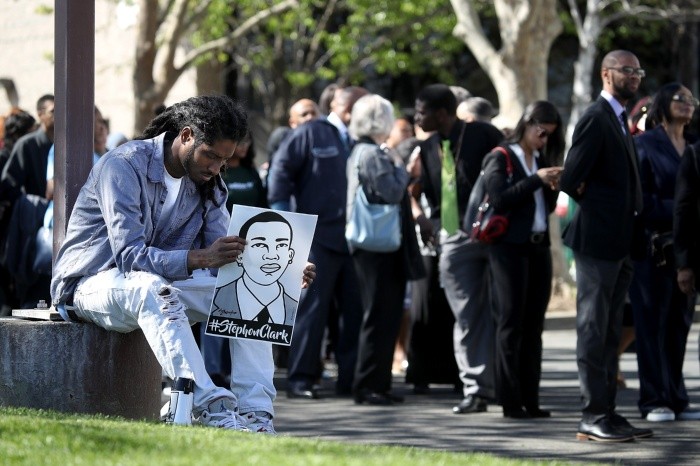 "Yo soy... Stephon Clark": la consigna fue repetida una y otra vez este jueves durante el velorio del joven negro muerto a tiros por la policía en California y ahora rostro de una "batalla nacional" contra la brutalidad policial.Unas 500 personas acudieron al funeral de Clark -que recibió 20 disparos en el patio trasero de su casa el 18 de marzo- en una iglesia de Sacramento, constató un fotógrafo de Afp.Un servicio ecuménico -que tuvo representantes de todas las religiones- se realizó frente al féretro rodeado de coronas florales con mensajes como "Descansa en Poder" -un juego de palabras del tradicional "Descansa en paz"- o "Te amamos 'big poppa'" (gran papá).Su hermano, Stevonte Clark, entró por el pasillo central del recinto acompañado de su familia -algunos con camisetas que tenían el rostro de la víctima-, mientras sonaba un gospel y un grupo de niñas, incluida otra hermana, bailaba detrás de la urna.Stevonte corrió al ataúd, lo abrazó, saltó por la tarima, bailó, levantó varias veces el puño en señal de protesta y luego tomó el micrófono, interrumpiendo parte de la ceremonia."Yo soy...", preguntaba. "Stephon Clark", respondía la audiencia."La familia Clark nunca morirá", gritó, mientras los organizadores del servicio trataban de que parara. Les respondió que no conocían a su hermano y que estaban allí "por el dinero".El célebre activista negro y pastor Al Sharpton lo consoló. "No se le dice a un doliente cómo manejar su dolor", criticó... Y añadió: "estamos aquí porque ese chico debería estar vivo"."No dejaremos que olviden el nombre de Stephon Clark hasta que consigamos justicia".Desde la muerte de Clark, las calles de Sacramento, donde se encuentra el capitolio del Estado, están regularmente bloqueadas por manifestantes.Este jueves decenas de personas se reunieron, tras los funerales, ante la oficina de la fiscal Anne Marie Schubert, que tiene que decidir si emprende o no un procedimiento judicial contra los policías.En las pancartas de los manifestantes del movimiento de defensa de los negros "Black Lives Matter" se podían leer frases como "Sin justicia, no hay paz" o "Condenar a policías asesinos".Según los medios locales, dos personas fueron detenidas durante la manifestación, que se desarrolló de forma pacífica pese a la tensión que reina en la ciudad.El domingo 18 de marzo, la policía llegó al barrio donde vivía Clark respondiendo a una llamada a los servicios de emergencia 911 sobre un hombre que había roto ventanillas de vehículos en la zona y se escondía en un patio.Los oficiales consideraron a Clark como el principal sospechoso y lo persiguieron. Todo fue grabado en video desde un helicóptero y a través de cámaras en los uniformes de los policías.El video muestra al joven corriendo y buscando refugio en el patio trasero de la casa de sus abuelos, donde residía.Los policías gritan: "¡Muestre sus manos!", e inmediatamente siguen: "¡Arma, arma, arma!". Ahí dispararon 20 veces. Al revisar el cuerpo, los agentes solo encontraron un celular iPhone.Este video muestra contenido explícito, se recomienda discreción:Clark tenía 22 años y era padre de dos niños.Al menos otras 16 personas -tres de ellas desarmadas- murieron en enfrentamientos con las fuerzas del orden en Sacramento en los últimos dos años, según el diario The Sacramento Bee, que no precisó sus razas.Una investigación independiente a cargo del fiscal general del estado, Xavier Becerra, fue abierta, y los oficiales responsables de la muerte de Clark -uno de ellos negro- están suspendidos.La portavoz de la Casa Blanca, Sarah Sanders, dijo que este "incidente terrible" era "un tema local" que debía "ser resuelto por las autoridades locales"."No es un tema local", zanjó el pastor Sharpton. "Vienen matando jóvenes negros por todo el país"."Esta no es más una batalla de Sacramento, esta es una batalla nacional. Stephon Clark despertó a la nación (...) Es hora de que detengamos esta locura".Los negros representan la inmensa parte del número de civiles ultimados por fuerzas del orden.El martes, el fiscal general de Luisiana anunció que no presentaría cargos contra dos agentes de policía que en 2016 mataron a tiros a otro hombre negro.El diario Los Angeles Times publicó el récord criminal de Clark -incluyendo casos de proxeneta y violencia doméstica- y destacó que en el momento en que fue abatido estaba en libertad condicional por un robo en 2014.Líderes comunitarios insisten, sin embargo, en que debe ser la conducta de los oficiales y no los antecedentes de la víctima, el factor relevante en la investigación, y la familia Clark -que perdió al hermano de 16 años de Stephon en un tiroteo en 2006- estudia demandar a la policía. JA