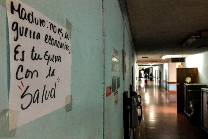 Carla debería comer menos pasta y arroz para que su pie sane, pero es lo único que recibe; un bebé fue alimentado con suero porque no había leche. La precariedad de la comida en los hospitales venezolanos amenaza la salud de los pacientes.Sin importar que sea diabetes, como en el caso de Carla, o una enfermedad cardiovascular, en los centros de salud pública se sirve lo mismo a todos."Como lo que traen", dice resignada Carla López, de 40 años, hospitalizada desde hace tres meses por llagas en un ulcerado pie.A su lado reposa un plato de lentejas y arroz, revoleteado por moscas que espanta con las manos. Una ración desabrida, pues en el Hospital Universitario de Caracas tampoco hay sal.Y aunque el exceso de carbohidratos le dispara los niveles de azúcar en la sangre, no puede pagar una dieta apropiada. Necesitaría 1.5 salarios mínimos para comprar un kilo de pollo, una de las muchas distorsiones de la crisis económica venezolana, con inflación que llegaría a un millón por ciento en 2018, según el FMI."Te dan pasta (de almuerzo), normalmente sola, o arroz con lentejas. En la mañana una arepa. En la noche te dan otra arepita pequeña, flaquita", cuenta la mujer, desempleada por su enfermedad.El hospital Universitario, en Caracas, llegó a tener un cocinero por cada especialidad médica, recuerda la nutricionista Gladys Abreu.Ahora, porciones de 40 gramos de arroz y 25 de granos dejan espacio de sobra en las bandejas. "Es apenas suficiente para un niño pequeño", lamenta una empleada de la cocina."Ni la basura recogen", lanza otra trabajadora del hospital, una imponente estructura de once pisos inaugurada hace seis décadas. Una papelera con desechos corrobora su denuncia. La Encuesta Nacional de Hospitales, difundida en marzo por el Parlamento controlado por la oposición y la ONG Médicos por la Salud, reveló que 96% de los centros no ofrece una alimentación adecuada o no suministra comida a los pacientes.El sondeo consultó 104 hospitales públicos y 33 clínicas privadas.En la maternidad Concepción Palacios, en el oeste de Caracas, dejaron de dar leche de fórmula por falta de presupuesto.Los padres deben llevarla, pero Yereercis Olivar, quien acaba de dar a luz a su segundo hijo, no puede pagarla.Tampoco puede amamantar al bebé, de quien fue separada para no contagiarle la varicela que contrajo durante el embarazo y que le llenó la piel de ampollas.Desesperada, optó por extraerse leche con una jeringa para llenar el biberón. Mientras esa tortura surtía efecto, el niño pasó tres días "con puro suero", relata.Escasa como muchos productos básicos, la leche para recién nacidos solo se consigue en el mercado negro, donde una lata cuesta unos 50 millones de bolívares (15 dólares). Comprarla requiere nueve salarios mínimos.Según el sondeo en los hospitales, 66% de los servicios pediátricos no poseen fórmulas lácteas.El deterioro se aceleró en los últimos años, atestigua Yereercis, cuyo primer hijo nació en el mismo lugar en 2016, en condiciones distintas. No pudo amamantar por tres días y el bebé recibió leche.Ahora "hay chiripas (cucarachas) en el área donde se preparan los teteros", denuncia Silvia Bolívar, enfermera con 25 años de servicio. Por agujeros en paredes y techos se filtran aguas contaminadas y roedores, agrega.La AFP contactó al ministerio de Salud para conocer su punto de vista. No obtuvo respuesta.Desde el sexto piso donde estaba aislada, Yereercis escuchaba las arengas de enfermeras que protestan desde hace casi mes y medio en reclamo de mejores salarios y condiciones de trabajo."Nutrición apoya el paro, exigiendo mejoras en la comida que se les da a nuestros pacientes", se lee en carteles pegados en las paredes de un pasillo.El presidente Nicolás Maduro asegura que la crisis se agravó por sanciones de Estados Unidos que, sostiene, mantienen bloqueados cientos de millones de dólares para comprar medicinas e insumos médicos, con más de 80% de escasez según gremios."Es duro cuando los pacientes nos tocan la puerta para decirnos que tienen hambre, temblando, a punto de desmayarse", se lamenta Silvia.Sin jabón para lavarlos y con la máquina esterilizadora dañada, los biberones de la maternidad huelen mal. Una capa oscura de hongos cubre los envases plásticos donde almacenan el arroz o la pasta que les sirven a las madres.Pisos y baños del Universitario y la maternidad están sucios por falta de desinfectantes. La limpieza se hace con agua y trapos desgastados.Carla no sabe cuánto tiempo más deberá pasar en su lúgubre habitación, amoblada con sillas rotas. Su pie no mejora, pero no todo es tristeza: un ramo de girasoles que le dejó su compañera de cuarto le iluminó el día.OA