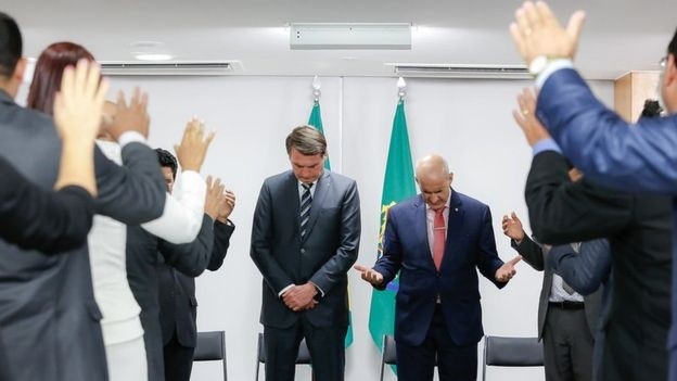 "La Biblia vuelve a palacio", declaró la presidenta interina de Bolivia, Jeanine Áñez, al tomar posesión el pasado 12 de noviembre. Unos días antes, Fernando Camacho, una de las principales voces en el proceso que llevó a la renuncia de Evo Morales, entró Biblia en mano al mismo edificio declarando que "Dios" volvería al "gobierno".Los dos son católicos y contaron con el apoyo de sectores conservadores de la Iglesia y de líderes evangélicos para debilitar a Morales.En los últimos años, menciones a Dios y de pasajes bíblicos parecen haberse multiplicado en los discursos políticos, y el apoyo evangélico fue instrumental en el ascenso de los líderes de derecha en América Latina y Estados Unidos.En Brasil, los evangélicos son la principal base electoral del presidente Jair Bolsonaro. En Estados Unidos no es muy diferente: Donald Trump contó con el apoyo de las iglesias pentecostales para salir elegido.Para el historiador estadounidense Andrew Chesnut, autor de decenas de libros y artículos sobre el crecimiento de las iglesias pentecostales, la fuerte influencia de los evangélicos en el ascenso y caída de líderes es una de las principales "tendencias" de la política actual en el continente americano."Hasta en México, donde la población pentecostal es pequeña, de apenas un 8%, un partido político fundado por un pastor pentecostal ayudó al actual presidente, Andrés Manuel López Obrador, a llegar al poder", le dijo Chesnut a BBC News Brasil."La influencia política evangélica es una de las tendencias políticas más importantes de las últimas cuatro décadas en el continente americano", agrega el profesor de la Virginia Commonwealth University.Pero, ¿qué explica esa influencia creciente de la religión en la política de países del continente? ¿Y por qué las iglesias evangélicas han conseguido cada vez más adeptos entre los latinoamericanos?En entrevista con BBC News Brasil, Chesnut enlistó 5 factores que ayudan a responder a esas cuestiones:El continente americano ha vivido una acentuada caída en el número de católicos, al mismo tiempo que se registró un gran aumento en la población evangélica.Según el Pew Research Center, principal centro de investigación sobre religiones, de 1900 a 1960, los católicos conformaban el 94% de la población de América Latina.Pero ese porcentaje cayó drásticamente. Un estudio del mismo centro de 2014 mostró que 84% de los entrevistados crecieron como católicos, pero apenas un 69% aún se identificaba como tal.En contraste, solo 9% de los latinoamericanos crecieron como evangélicos, pero el 19% dice seguir esa religión actualmente.Para Andrew Chesnut, quien estudia el movimiento pentecostal desde hace 25 años, una característica importante acompaña al crecimiento del número de evangélicos en el continente americano: el compromiso político de líderes e integrantes de esa religión.El investigador destaca que los católicos son un grupo más "heterogéneo", con segmentos ligados a la izquierda y otros a la derecha. Esa pluralidad, en la práctica, dificultaría una movilización política coordinada."Dentro del catolicismo, tienes sectores conservadores, ligados al Opus Dei, por ejemplo, y otros más progresistas, como los miembros de la Teología de la liberación. Entonces, hay más diversidad y eso hace más difícil la tarea de lograr una alianza católica", explica."Y los evangélicos son más homogéneos políticamente. Eso facilita la unión y las alianzas para elegir determinados políticos".Los ejemplos más recientes y evidentes de la fuerza evangélica en política son la elección de Jair Bolsonaro en Brasil y la caída de Evo Morales en Bolivia. Los dos episodios contaron con el apoyo crucial de sectores evangélicos.En la caída de Morales, fue una figura ligada al ala más conservadora de la Iglesia católica y a los líderes evangélicos la que ganó protagonismo: Luis Fernando Camacho.Camacho ejerce como presidente del Comité Cívico Pro Santa Cruz, una entidad que reúne a cerca de 200 instituciones, entre asociaciones de residentes, trabajadores de derecha y empresarios. El comité funciona en la ciudad más poblada de Bolivia, Santa Cruz de la Sierra, y se le llama "gobierno moral".Sus constantes menciones al "poder de Dios" y su costumbre de citar fragmentos de la Biblia han hecho que la prensa internacional se refiera a él como el "Bolsonaro boliviano".Él fue el principal articulador de las protestas en las calles que culminaron en la retirada de apoyo de la policía y las fuerzas armadas al gobierno de Morales. Camacho suele iniciar sus discursos con una oración y, al entrar en el antiguo Palacio de Gobierno, en La Paz, pocas horas antes de la renuncia del expresidente, depositó una Biblia junto a la bandera boliviana.Para Chesnut, Camacho y Bolsonaro tienen características en común."Bolivia es interesante, porque es un país más predominantemente católico que Brasil. El 70% de los bolivianos son católicos. Pero, en la salida de Morales del poder, vimos una fuerte influencia evangélica", analiza."Camacho es más o menos como Bolsonaro. Él es católico, pero tiene una gran influencia pentecostal y tiene a los pentecostales como grandes aliados. Su discurso es 100% pentecostal".La senadora Jeanine Áñez, quien se proclamó presidenta interina de Bolivia tras la salida de Evo Morales, sigue la misma línea. Ella entró al Palacio de Gobierno, en La Paz, con una enorme Biblia, y juró detrás de un altar montado con velas y la imagen de Jesús crucificado."Un aspecto importante del papel que la religión ha ejercido en los gobiernos latinoamericanos es la existencia de una convergencia entre los evangélicos y los católicos conservadores", dice Andrew Chesnut.Aunque los ejemplos brasileño y boliviano son contundentes, el profesor estadounidense dice que la tendencia de crecimiento de la influencia evangélica en los gobiernos no es característica solo de América Latin