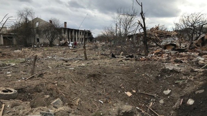 En una pared blanca y húmeda del sótano de una escuela en Yahidine hay un rudimentario calendario, dibujado con un crayón rojo. Para la gente de esta aldea ese almanaque registra un período de trauma inimaginable: desde el 5 de marzo al 2 de abril.Yahidne, en las afueras de la ciudad de Chernígov, unos 140 km al norte de Kiev y cerca de las fronteras con Bielorrusia y Rusia, fue ocupada por soldados rusos durante casi un mes.El ejército invasor sacó encañonados a hombres, mujeres y niños de sus casas y los retuvo en el sótano de la escuela local durante cuatro semanas, unas 130 personas hacinadas en un espacio de unos 65 metros cuadrados.Mykola Klymchuk, de 60 años, fue uno de ellos. Se ofreció para mostrarnos el sótano.Según descendíamos unas pequeñas escaleras, empezamos a oler el hedor de enfermedad y putrefacción. El cuarto estaba sucio, con unos colchones, ropa, zapatos y libros tirados en el suelo, cuatro pequeños catres en el centro y un montón de utensilios en una esquina.Mykola nos llevó directamente al extremo opuesto del cuarto."Este era mi medio metro de espacio. Dormía parado", afirmó. Su voz se quebró y empezó a llorar. "Me amarré aquí a la baranda con mi bufanda para no caerme. Pasé 25 noches así".Mykola contó que no podía moverse por temor a pisar a otra gente. Había entre 40 y 50 niños entre los cautivos, incluyendo bebés. El menor tenía apenas 2 meses.Las fuerzas rusas llegaron con rapidez a Yahidne cuando lanzaron su ataque contra Chernígov, una ciudad de unos 300.000 habitantes que quedó aislada, rodeada y bombardeada por los rusos durante semanas. También destruyeron un puente en la carretera hacia la capital, Kiev, dejando a los residentes sin una ruta de escape.Ahora, las fuerzas rusas se han retirado tras fracasar en la toma de Kiev.La BBC es uno de los primeros medios que ha podido llegar a la zona y revelar el horror de lo que sucedió durante la ocupación y el bombardeo. Por su cercanía a la frontera, la gente sigue preocupada de que los rusos puedan regresar pronto.Anastasiia, de 15 años, estuvo en el sótano con su padre y abuela."Apenas había espacio suficiente. Vivíamos sentados. Dormíamos sentados. No es que durmiéramos. Era imposible. Caía tanta artillería por aquí. Era insoportable", contó.El cuarto no tenía ventilación. Las dos únicas ventanas estaban selladas con tablas."Durante mi tiempo aquí, murieron 12 personas", indicó Mykola.La mayoría eran ancianos. No está claro de qué murieron, pero Mykola cree que algunos lo hicieron sofocados.Cuando las personas morían, sus cadáveres no podían ser sacados inmediatamente. Los soldados rusos no permitían hacerlo diariamente. Y dados los constantes combates afuera -la artillería, las explosiones y el fuego de armas- era además peligroso.Eso significó que la gente, incluyendo los niños, vivieron en medio de cadáveres durante horas, algunas veces días, hasta que pudieran ser sacados."Daba mucho miedo. Conocí a las personas que murieron", indicó Anastasiia. "Ellas nos trataron muy bien. Me sentí tan triste, murieron aquí por ningún motivo"."En condiciones normales, no hubieran muerto. Putin es un criminal de guerra", señaló Mykola."Mis pies se empezaron a inflamar. Pero continué diciéndome 'debo sobrevivir. Lo debo hacer, por mi hija y mis dos nietas'".La mayoría del tiempo no se les permitía a las personas siquiera usar un baño. En su lugar tenían que utilizar baldes."Algunas veces los soldados sacaban a las personas para usarlas como escudos humanos", aseguró Mykola.Se les permitía cocinar en fogatas afuera dos veces al día. La aldea tenía suficientes aprovisionamientos de comida y un pozo de agua.Uno de los soldados rusos le dijo a Mykola que les informaron que se quedarían en Ucrania solo cuatro días, lo suficiente para capturar Kiev.El 3 de abril, los rusos se retiraron de Yahidne.Los soldados ucranianos se encuentran en la aldea ahora y la mayoría de los que estuvieron atrapados han sido evacuados a zonas aledañas."Me despierto muchas veces durante la noche. Siento como si pudiera escuchar el sonido de los disparos. Corro asustada a donde mis padres", dice Anastasiia.Los rusos ocuparon aldeas como Yahidne alrededor de Chernígov en un intento de sitiar la ciudad y finalmente tomar control de ella.No pudieron entrar en la ciudad, pero ha habido destrucción extensa en muchas partes y las autoridades dicen que unos 350 civiles han muerto.Desde el retiro de Rusia de Chernígov, los voluntarios han estado enterrando a los muertos. Una parte del cementerio local está ahora lleno de nuevas tumbas, con un letrero puesto en cada una, para que pueda ser identificada.Las familias que fueron separadas han empezado a regresar a ver si pueden encontrar la tumba de sus seres queridos.Un estadio local de fútbol fue bombardeado por un avión ruso, dicen los funcionarios. Se puede ver un inmenso cráter en el centro de la cancha donde cayó una bomba. Otra destruyó parte de la tribuna, que ahora es un torcido revuelto de asientos de plástico rotos y barandas metálicas.Cerca del estadio, una biblioteca infantil que quedaba dentro de un edificio histórico también ha sido gravemente averiada.En Novoselivka, al norte de Chernígov, la destrucción se extiende tan lejos como la vista alcanza.Montones de piedras y ladrillos yacen donde solía haber casas. Vimos una chaqueta de invierno rosa, un osito y un elefante de peluche, y piezas de Lego en uno de los caminos que conducía a las áreas residenciales.A lo largo del camino, vimos más cráteres de bombas.Una mujer y un niño en bicicleta nos hicieron señas para que los siguiéramos.Nina Vunnyk, de 62 años, y su nieto de 10, Danylo, querían mostrarnos su casa -ahora un cascarón- en la que el interior y el entorno había sido destruido.Ludmyla, de 39 años, hija de Nina y madre de Danylo, perdió una pierna y está en el hospital.Cuando empezaron a bombardear la casa de Nina, corrier