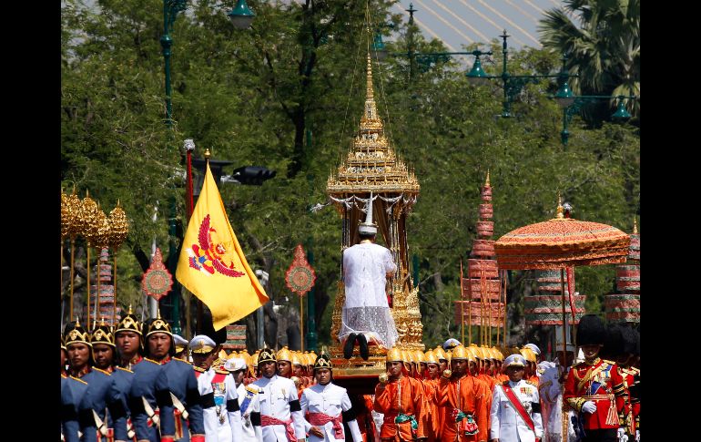 Las exequias del rey Bhumibol de Tailandia, fallecido hace un año, concluyeron hoy con una ceremonia religiosa en el Palacio Real de Bangkok que estuvo presidida por su hijo y heredero, el rey Vajiralongkorn.Las cenizas del monarca, que fue incinerado el jueves, serán trasladadas a continuación en procesión solemne a los templos de Bowonniwt Vihara y Ratchabophit Sahit Maha Simaram, cercanos al complejo palaciego, en el centro de la ciudad.Los huesos del difunto serán depositados en una urna dorada que permanecerá en una sala especial del Palacio Real que acoge también los restos de buena parte de los monarcas de la dinastía Chakri, a la que pertenecía el soberano fallecido.A las honras fúnebres, que han durado cinco días y se han desarrollado de acuerdo con la tradición budista, han asistido cientos de miles de súbditos, llegados algunos desde puntos muy distantes de la capital tailandesa.Las exequias tuvieron su punto culminante el jueves, con la presentación de condolencias a la familia real local por parte de representantes de 42 países, incluidos los de 24 monarquías.Entre los asistentes al acto figuraron la reina Sofía de España, la reina Máxima de Holanda, la reina Silvia de Suecia y el príncipe Andrés de Inglaterra, así como miembros de varias monarquías asiáticas, como los príncipes de Japón y los reyes de Bhutan.El rey Bhumibol murió el 13 de octubre de 2016 a los 88 años en un hospital de Bangkok donde había estado ingresado de manera casi ininterrumpida durante más de un año tras siete décadas de reinado, lo que le había convertido en el decano de los jefes de Estado del mundo.