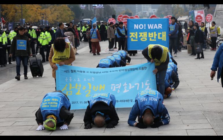 La llegada del presidente estadounidense, Donald Trump, a Corea del Sur mañana estará marcada por numerosas protestas por todo el país, que visita como parte de una gira por Asia en el que la crisis con Corea del Norte juega un papel capital.Como anticipo, decenas de surcoreanos se manifestaron hoy , como ya ocurrió el fin de semana, a favor y en contra del viaje de Trump ante la embajada del país norteamericano en la céntrica plaza de Gwanghwamun de la capital surcoreana.El Gobierno surcoreano sólo ha permitido este tipo de pequeñas concentraciones en la mencionada zona al tiempo que ha activado grandes dispositivos de seguridad ante las numerosas manifestaciones que se esperan mañana, día en el que llegará Trump, en distintos puntos del país."Presidente Trump no tenemos miedo a morir. ¡Ataque Corea del Norte ahora mismo!" o "Mate al hombre cohete Kim Jong-un (mote que Trump ha empleado para referirse al líder norcoreano) y bombardee Corea del Norte" rezaban las pancartas de los manifestantes a favor de la visita del presidente estadounidense hoy en Seúl."¡(Trump) Debería matar a Kim Jong-un, es una amenaza para los surcoreanos!", declaró a Efe un manifestante de 69 años y apellidado Lee.Sus correligionarios también portaron mensajes en favor de la expresidenta conservadora Park Geun-hye, que fue destituida de su cargo y está siendo juzgada por un caso de corrupción, o en contra de la retirada de tropas estadounidenses de Corea del Sur (el Pentágono mantiene un contingente de 28 mil 500 hombre en el país).Aquellos opuestos al viaje de Trump a Corea del Sur, algo menos numerosos y también menos aguerridos, se situaron a escasos metros en el espacio delimitado por las autoridades y lucieron pancartas en las que se podía leer "Zona anti-Trump" o "No a Trump. No a la guerra".Trump tiene previsto reunirse mañana en Seúl con su homólogo, Moon Jae-in, en un encuentro marcado por la crisis con el régimen norcoreano y sus repetidos ensayos armamentísticos.El presidente estadounidense pronunciará además el miércoles un discurso ante el Parlamento surcoreano antes de poner rumbo a China, siguiente destino de su gira asiática, que también incluye paradas en las cumbres de la APEC y la ASEAN en Vietnam y Filipinas.